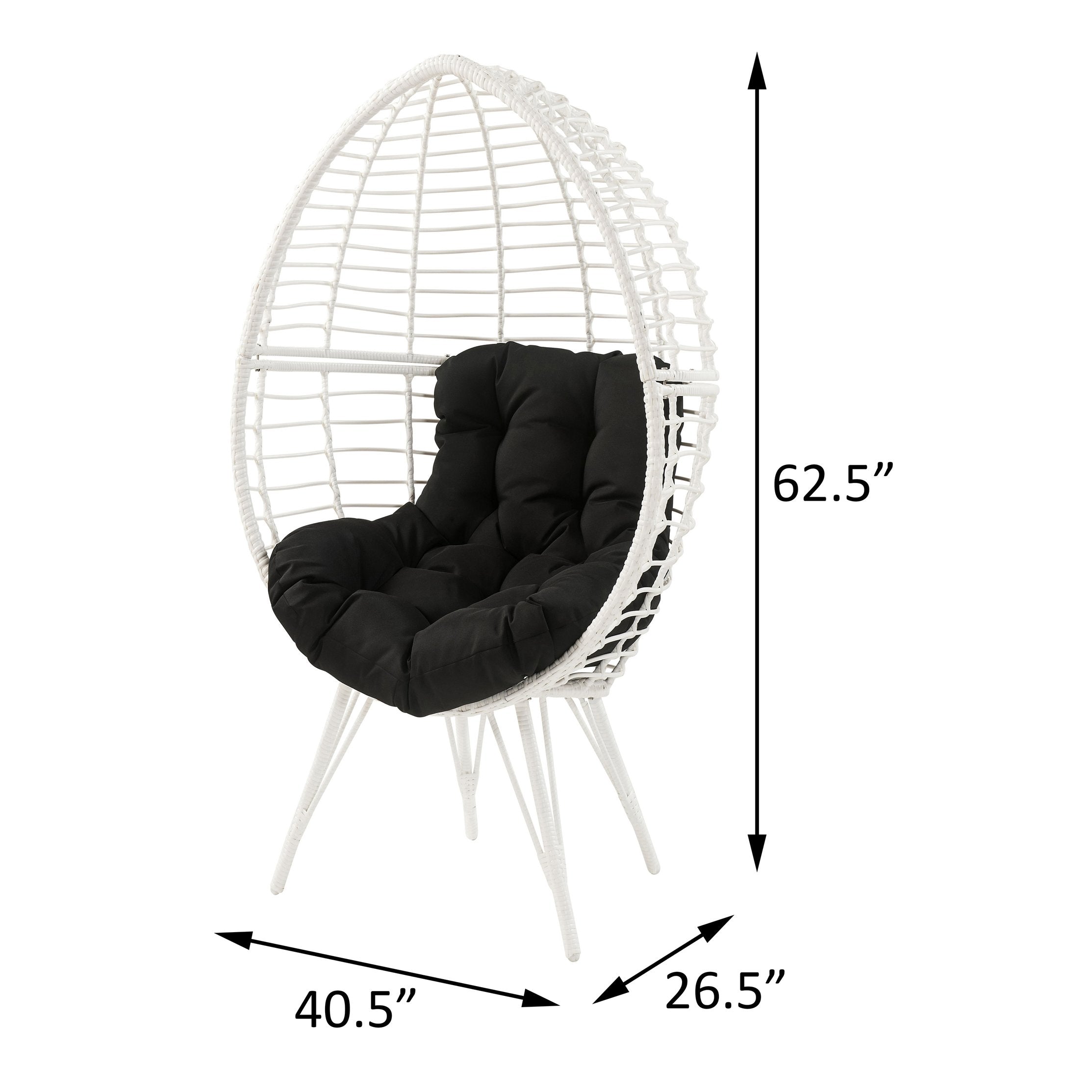 Transform your outdoor space into a chic retreat with this modern patio lounge chair. Its striking black-and-white wicker and teardrop silhouette create visual interest, while the plush, removable cushion and sturdy steel legs deliver lasting comfort and support for lounging, reading, or entertaining outdoors.