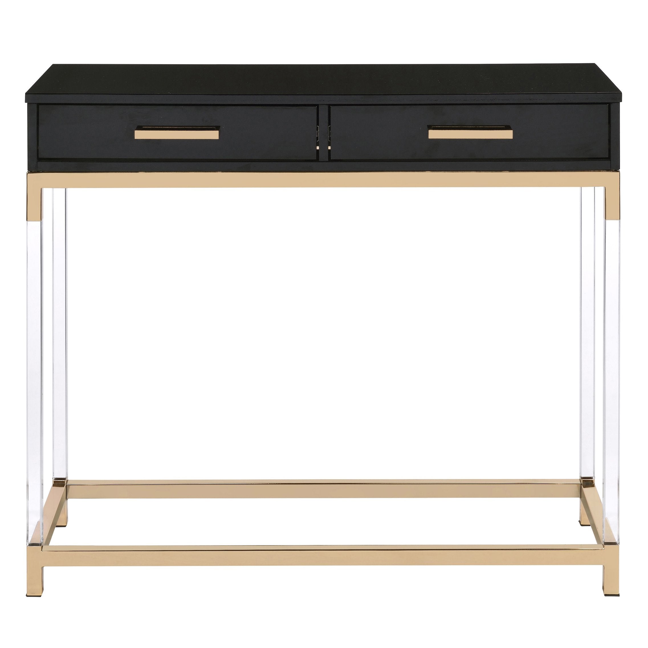 Introduce refined glamour to your entryway or living space with this striking console table. Its high-gloss black surface and gold-accented frame present a contemporary yet timeless silhouette, while two smooth-operating drawers and a transparent acrylic leg add both functionality and a light, elevated visual effect.