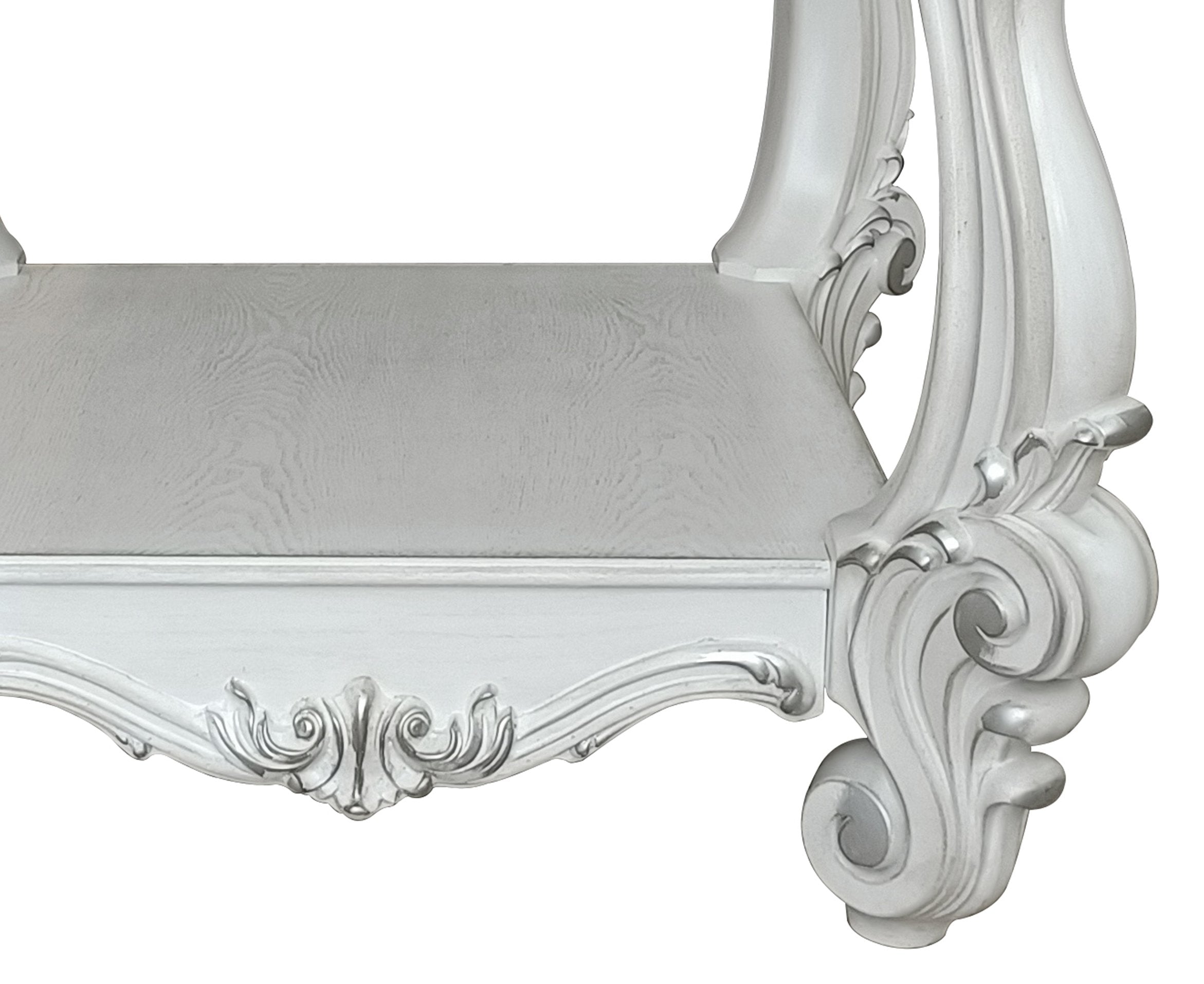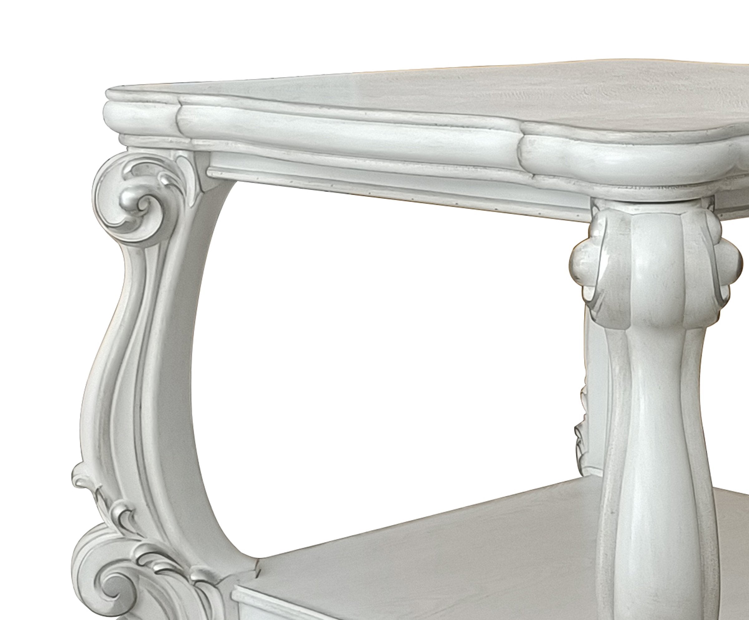 Bring classic charm and practical storage to your living space with this bone-white end table. Its light, airy finish and delicately carved floral legs create a graceful focal point that complements traditional, cottage, or shabby-chic interiors, while the roomy bottom shelf offers easy access to books, décor, or everyday essentials.