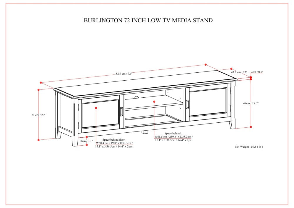 - DIMENSIONS: 17" D x 72" W x 20" H