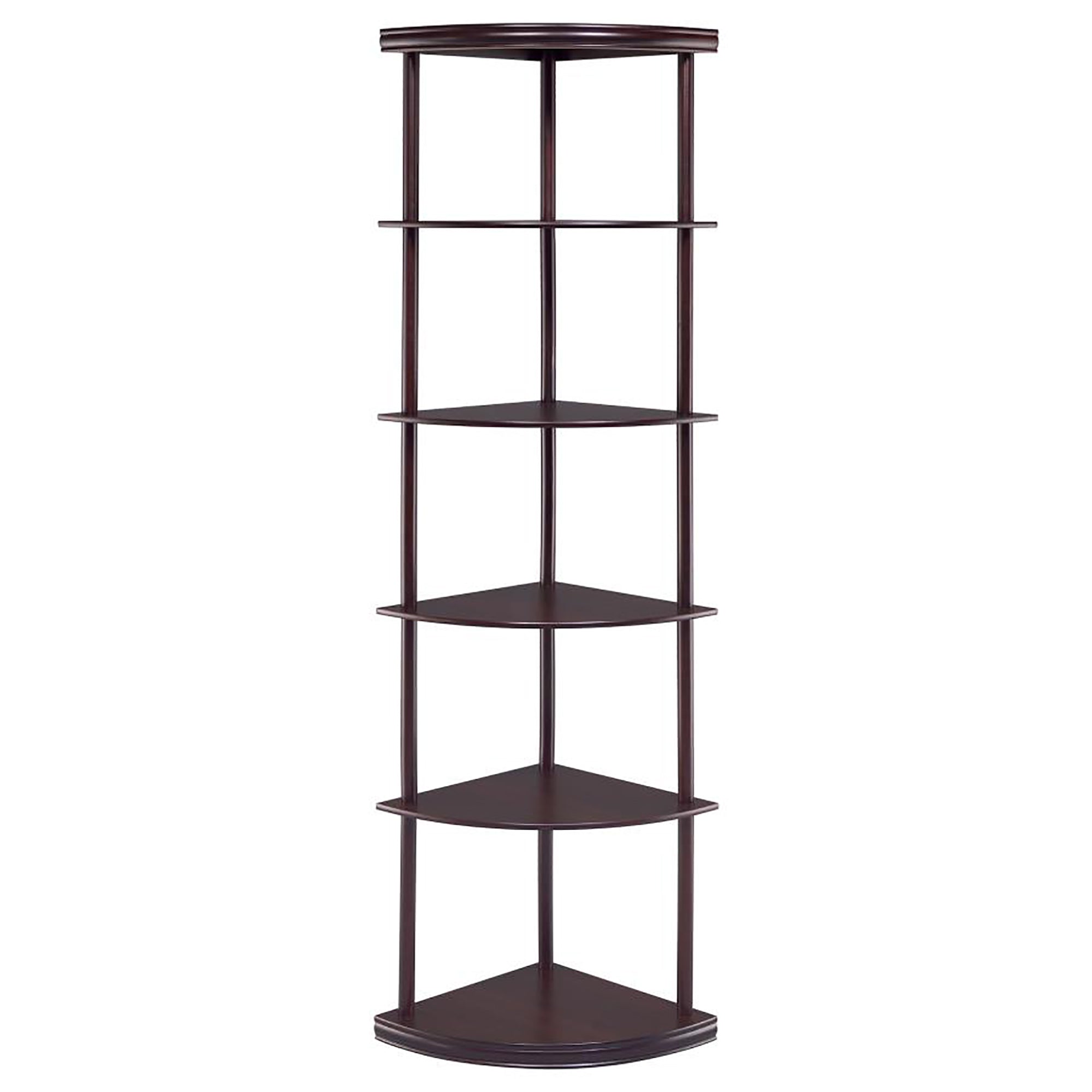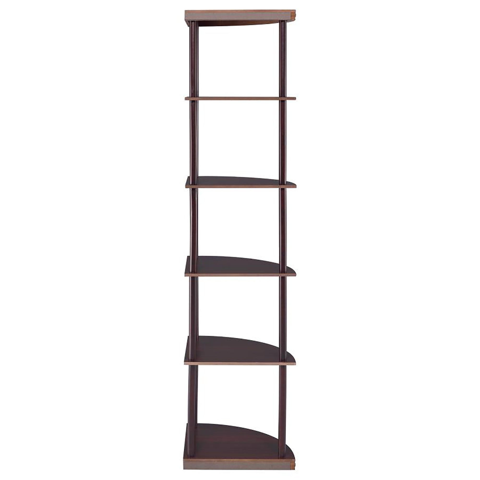 Bring elegance and smart storage to underused corners with this cappuccino-finished corner bookcase. Its five quarter-circle shelves create a graceful silhouette while providing practical display and storage for books, decor, and media in living rooms, home offices, or libraries. Built from durable materials with a warm cappuccino veneer, it combines style and function in a compact footprint.