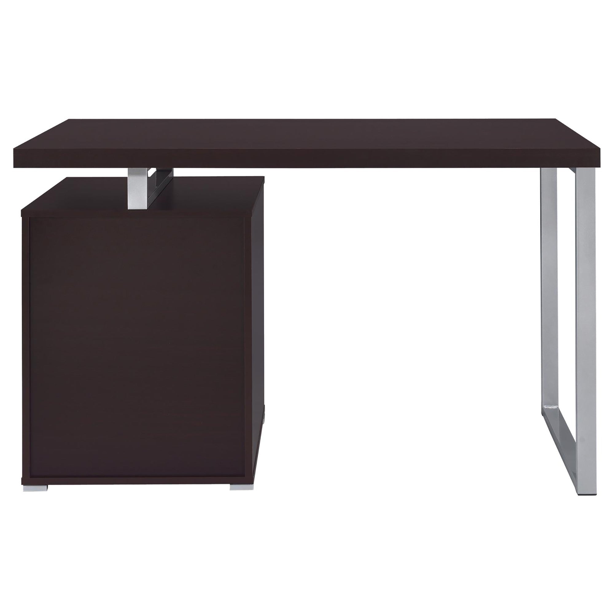 Create a comfortable, organized workspace with this elegant cappuccino office desk. Designed for both style and function, it combines a warm veneer finish with sturdy metal legs and smooth-operating drawers to keep your essentials tidy and within reach. Its reversible configuration adapts to left- or right-handed setups, making it a flexible choice for home offices and small workspaces.