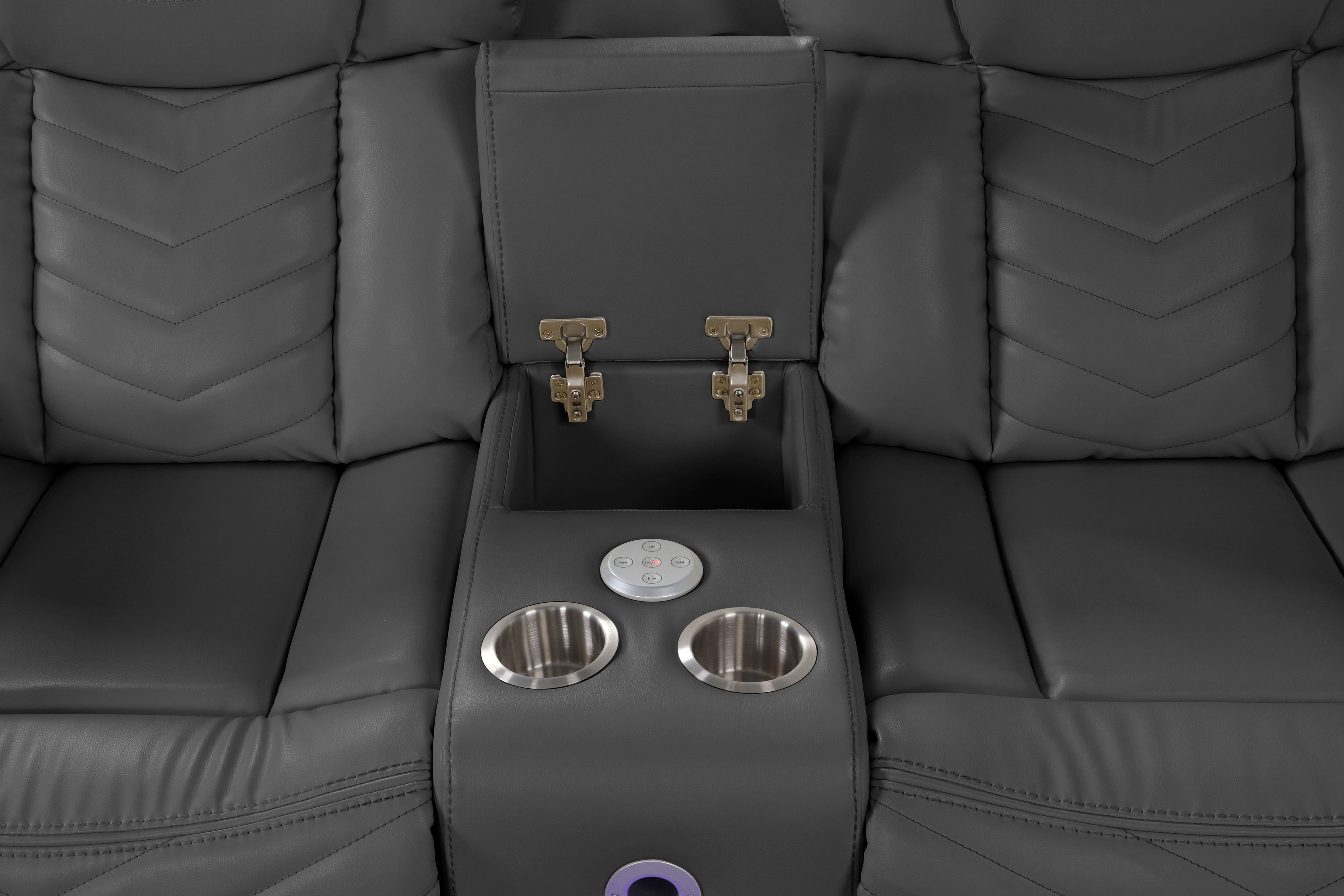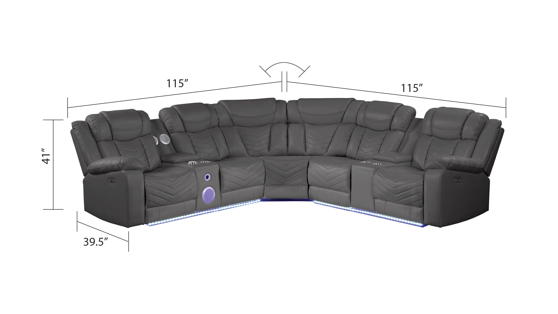 Upgrade your living space with a modern sectional that blends sleek design, smart functionality, and lasting comfort. This gray faux-leather recliner sectional is engineered for everyday lounging and entertaining—featuring power recline, integrated tech, and thoughtful conveniences—so you can relax, recharge devices, and enjoy media without leaving your seat.
