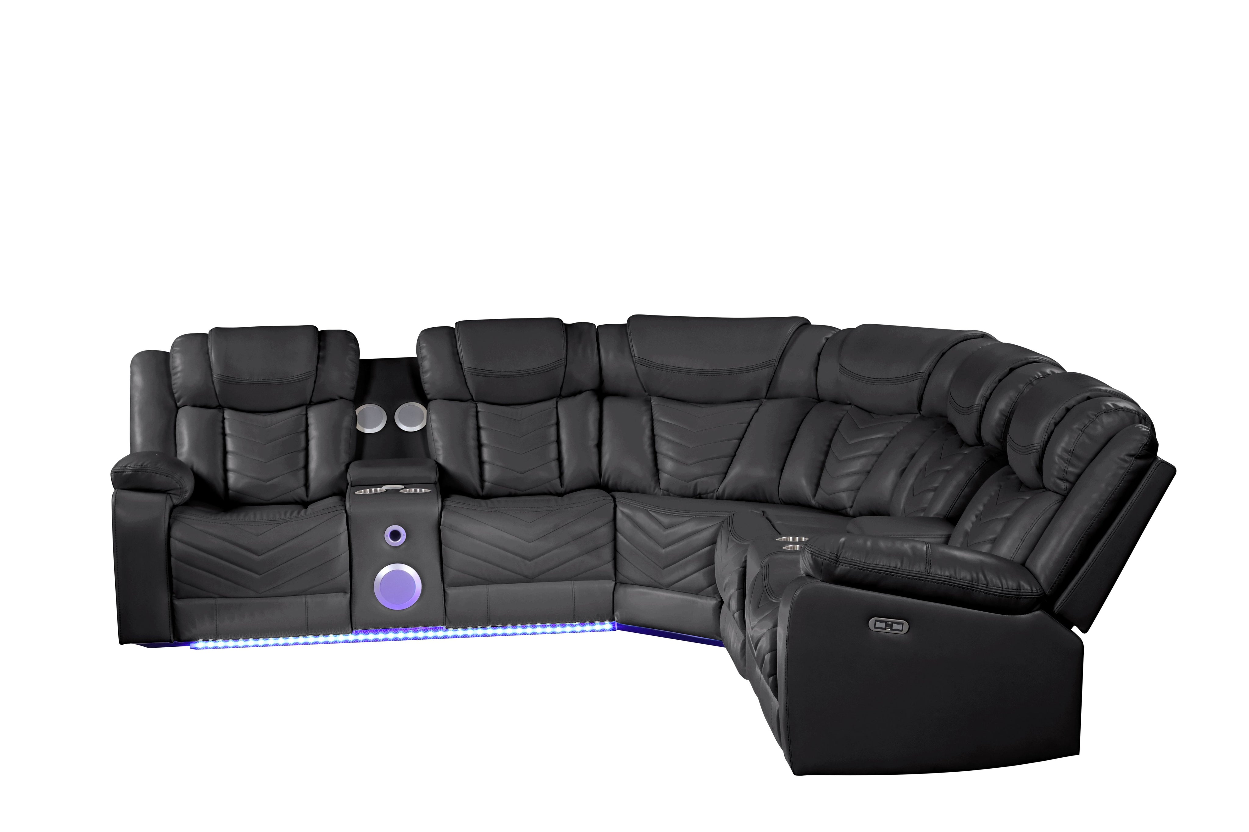 Experience next-level comfort and contemporary style with this modern recliner sectional that blends sleek design with smart functionality. Perfect for living rooms, home theaters, or entertainment spaces, the sectional offers supportive construction, plush seating, and integrated technology so you can relax, recharge, and entertain without leaving the couch.