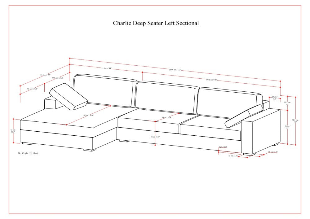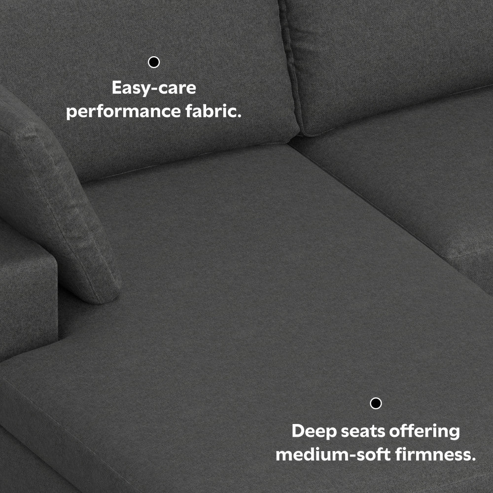 Sink into relaxed luxury with the Charlie Deep Seater Left Sectional Sofa — a handcrafted, oversized left-facing L-shaped design that combines eco-conscious materials, durable construction, and plush comfort for everyday lounging or entertaining. Its extra-wide chaise and deep seats invite you to stretch out, while performance fabric and thoughtful cushioning ensure long-lasting comfort and easy care.