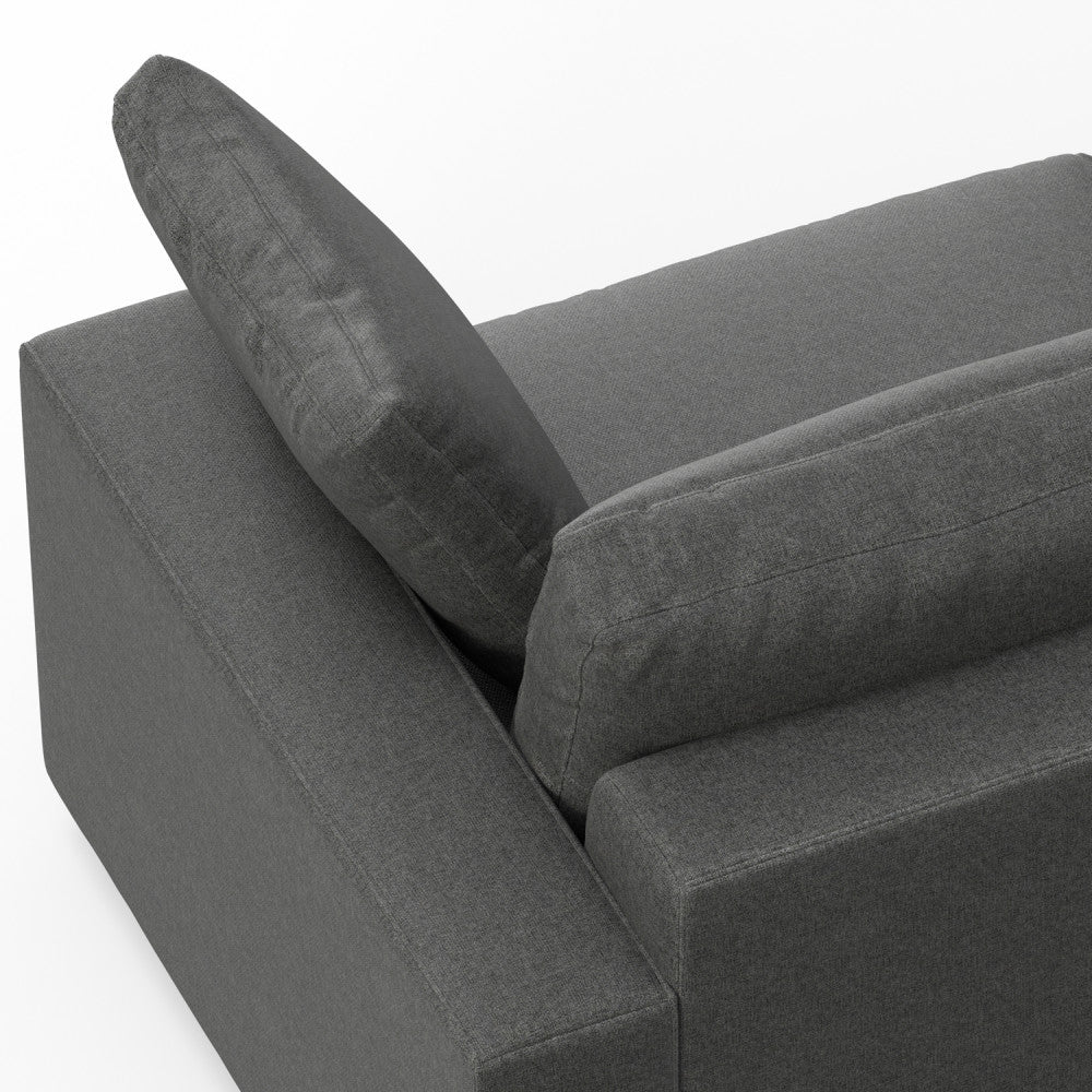 - The 2 throw pillows and 3 8.25-inch-thick loose, reversible back cushions are stuffed with a combination of feather and fiber filling for a softer feel, while the wide armrests are covered in thick foam padding for a cozy seating experience.