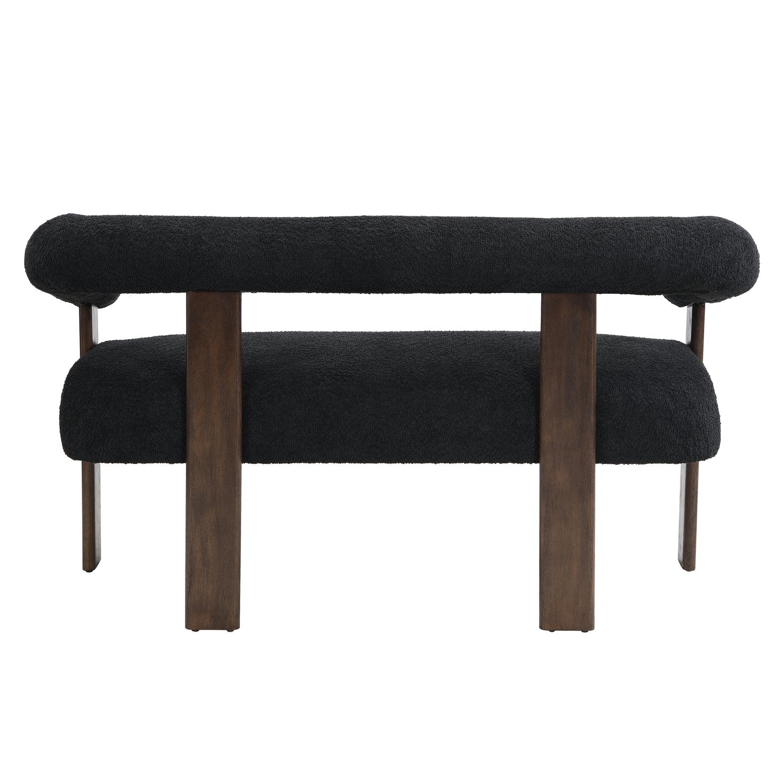 Introduce a touch of modern comfort and sculptural style to your living space with this elegantly curved 2-seat loveseat. Combining boucle fabric, warm wood accents, and an ergonomically sculpted silhouette, it offers a cozy seating experience while making a stylish statement in small living rooms, apartments, or reading nooks.
