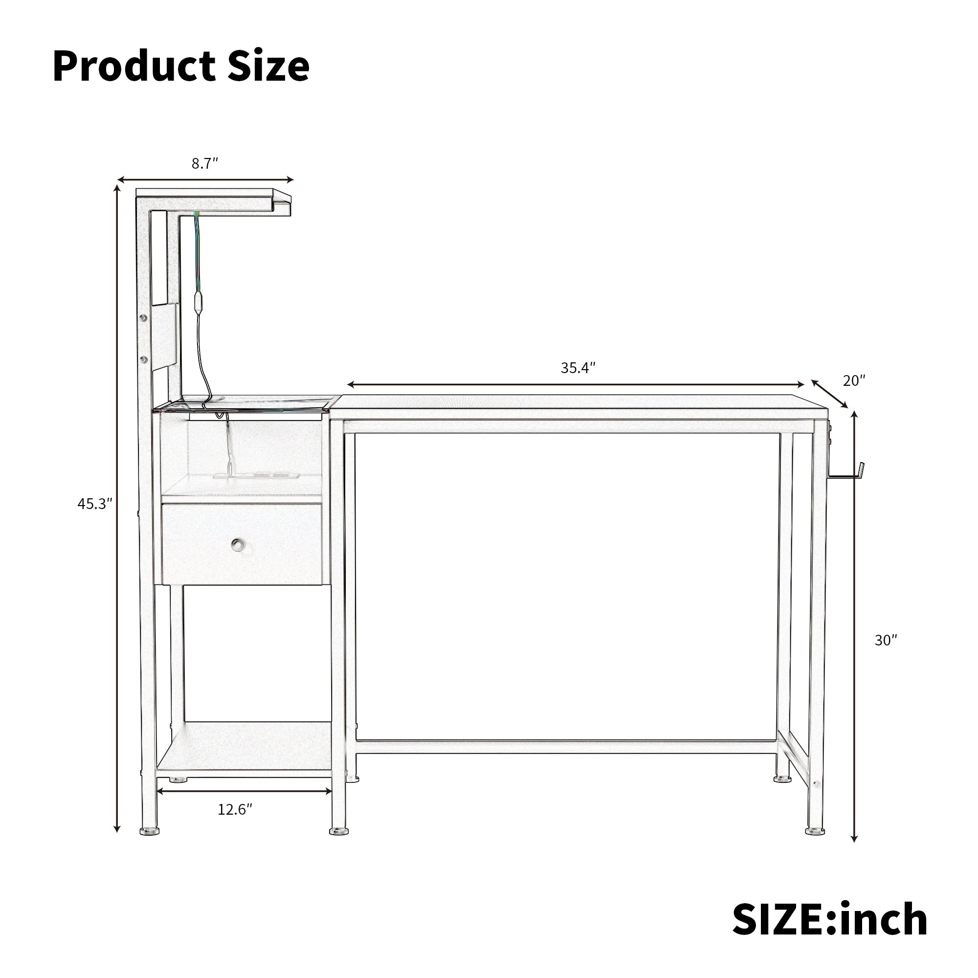 - Sturdy Stable Structure: Overall dimensions: 48"(L) x 20"(W) x 43.5"(H). This computer desk with drawers constructed by premium metal frame and MDF, which stable and sturdy, ensuring you enjoy your time on this desk.