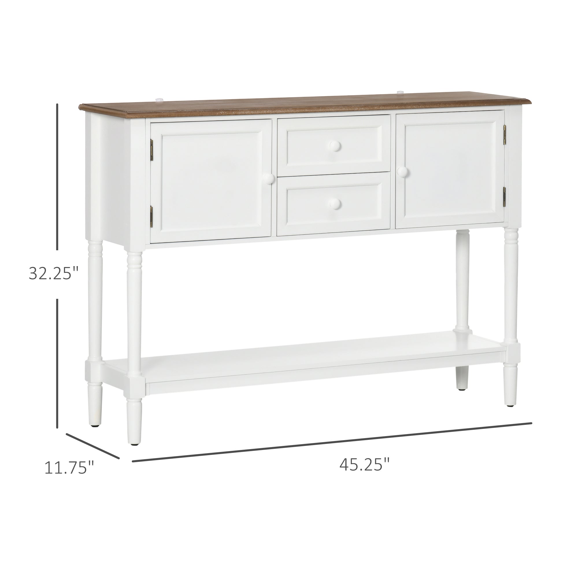 Give your entryway or living room an instant style upgrade with this vintage-inspired console table. Its distressed white finish and practical storage layout combine retro charm with everyday functionality—ideal for organizing keys and mail, displaying decor, or serving as a sofa/behind-couch table. Built from durable MDF with pine legs and an anti-tip design, it offers stable performance and versatile placement throughout the home.