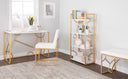 Add modern glamour and airy display space to your living room or office with this contemporary bookcase. The slender gold metal frame and black wood shelves create a striking contrast that complements minimalist, mid-century, and glam interiors while keeping your books, decor, and media organized and on display.
