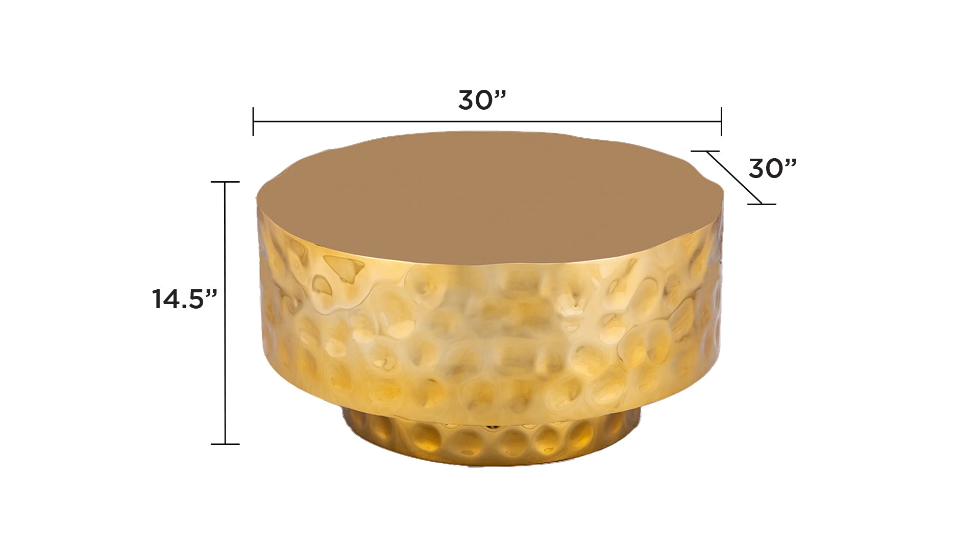 Add instant sophistication to your living room with this modern, hand-finished metal coffee table. Crafted from premium stainless steel with a hand-hammered surface, its rounded silhouette provides both visual interest and tactile depth, making every piece uniquely beautiful. Available in copper, gold, or silver finishes, this versatile table functions as a practical centerpiece while elevating contemporary and transitional interiors alike.