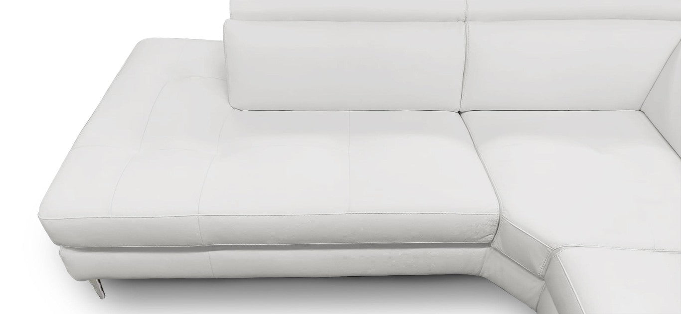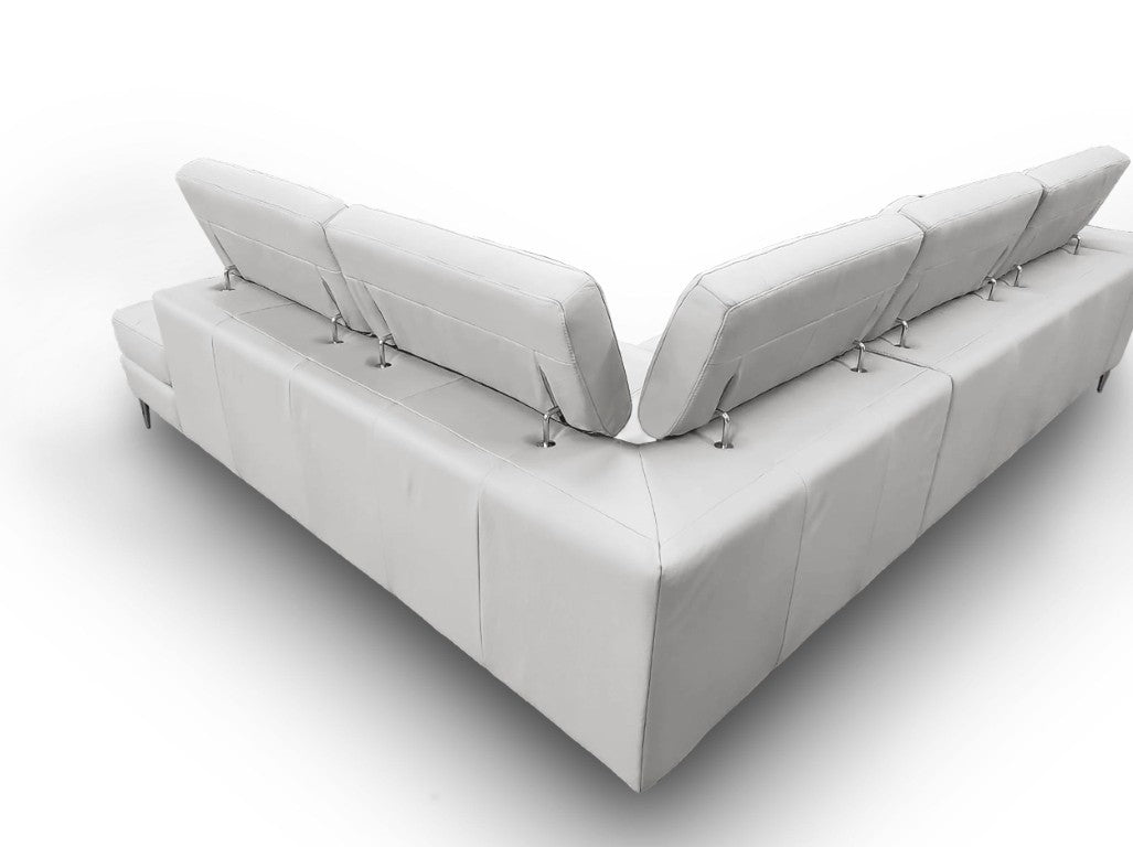 Elevate your living space with the Viola sectional — an Italian-crafted, contemporary sofa that blends sleek modern design with luxurious comfort. Upholstered in top-grain spessorato leather, this right-facing configuration offers generous seating, adjustable headrests for personalized support, and stainless steel legs for a refined, durable finish. Ideal for contemporary homes that value both style and functionality.
