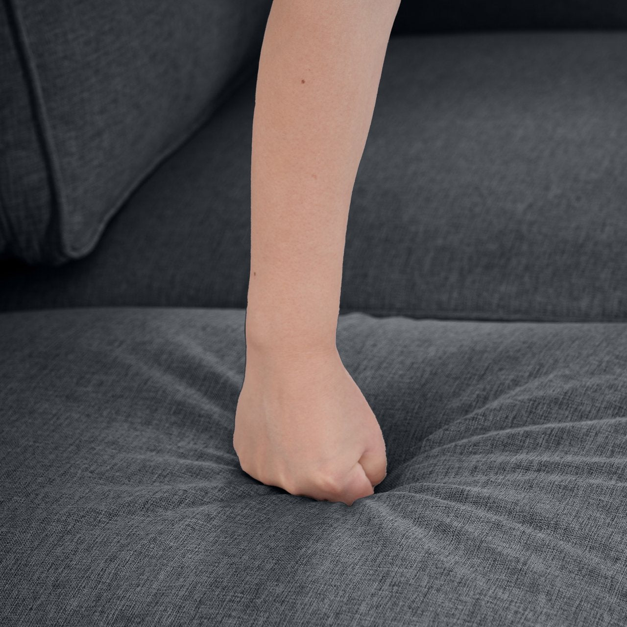 - The 3pcs sofa sets uses soft fabric and the cushion filled with a high-dense sponge provides ample back support and a skin-friendly lounging experience.