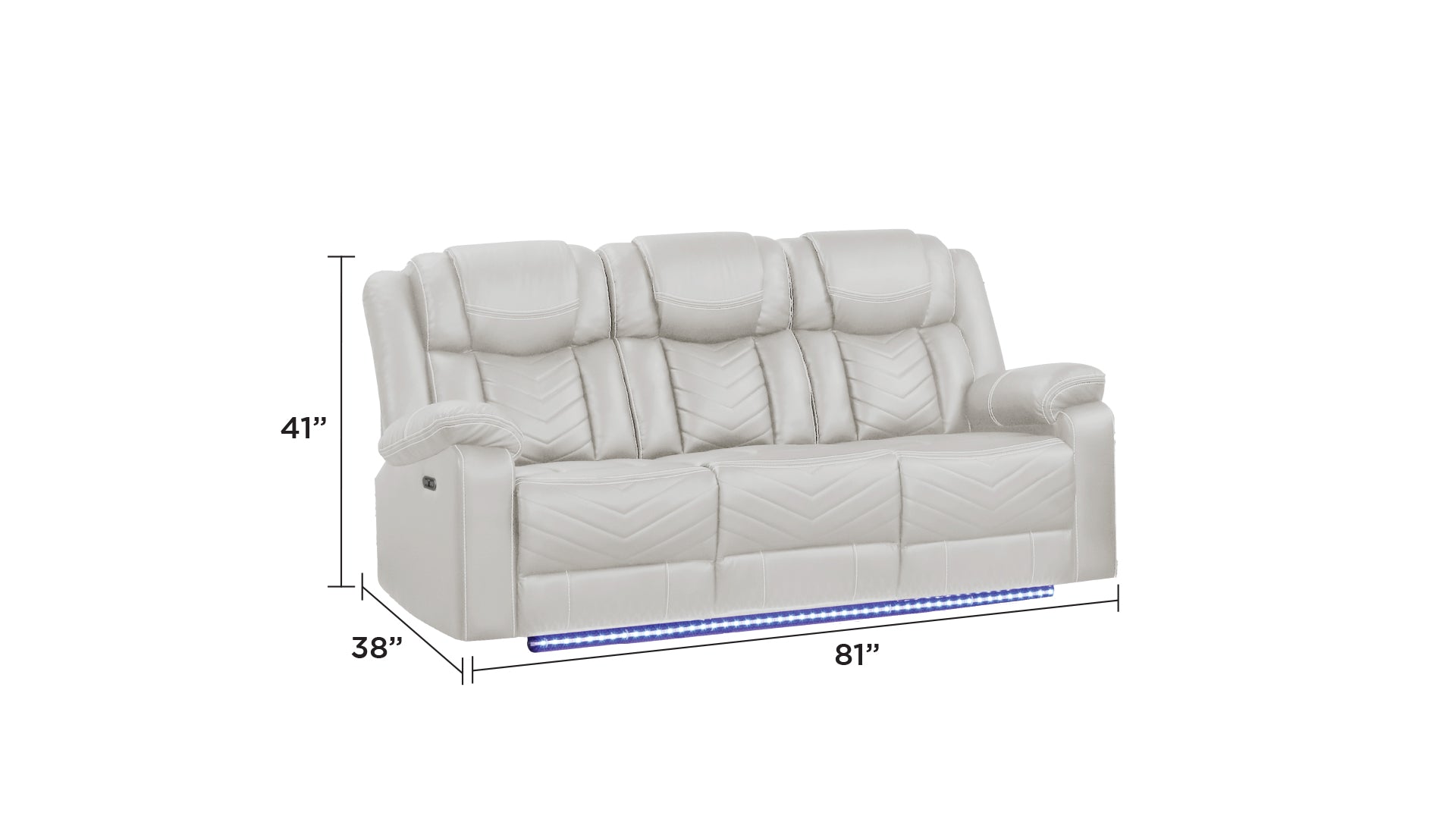 Transform your living room into a modern retreat with this 3-piece power reclining set that blends contemporary design, advanced convenience, and durable construction. Upholstered in soft beige faux leather and built with a sturdy wood and metal frame, each piece offers customizable comfort, tech-friendly features, and ambient LED lighting to enhance movie nights and everyday relaxation.