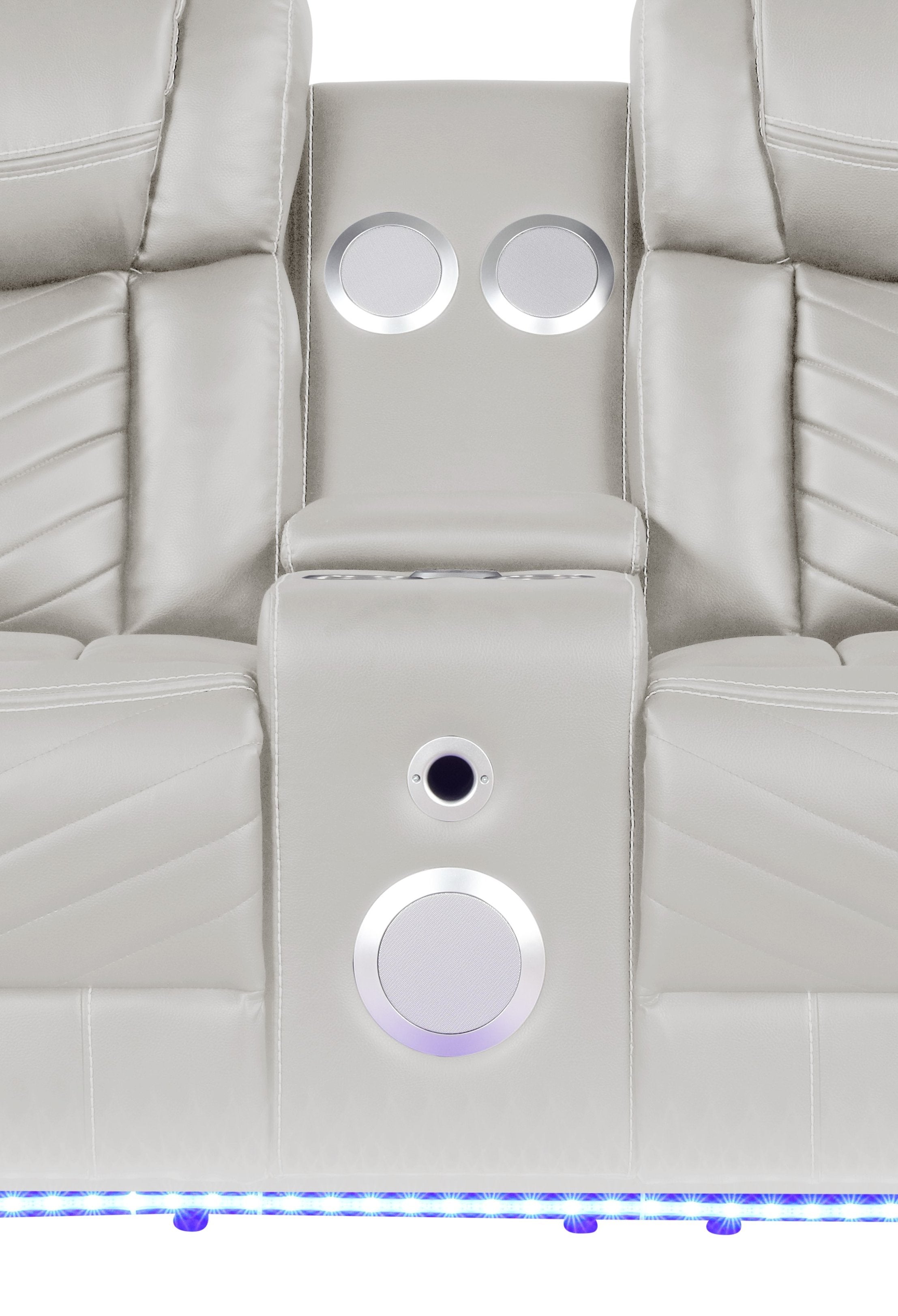 - Additional Convenience: Sofa includes a fold-down center console with cup holders; LED base lighting on each piece creates a subtle ambient glow.