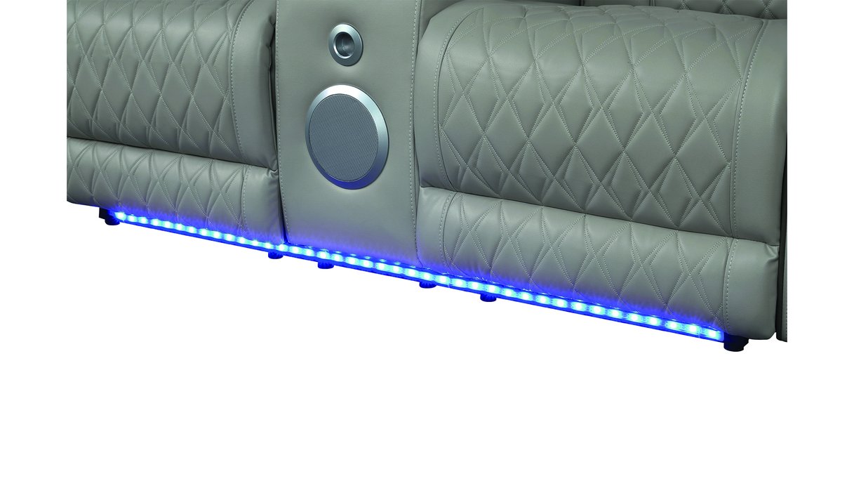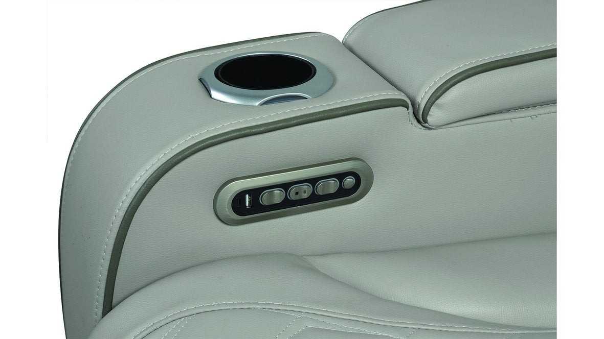 - The loveseat includes built-in Bluetooth speakers, along with hidden storage compartments and USB ports in the armrests.