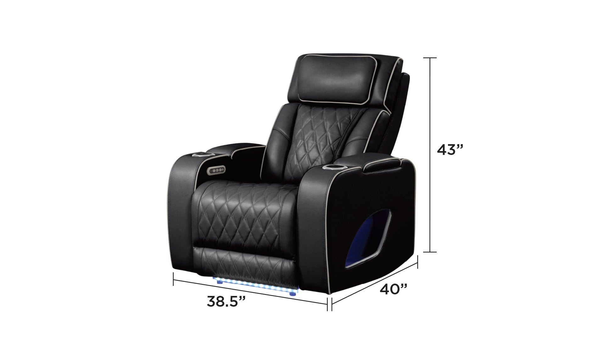 - Loveseat features: Integrated Bluetooth speakers for immersive audio; power foot and head recline; LED accent lighting and diamond-stitched detailing.