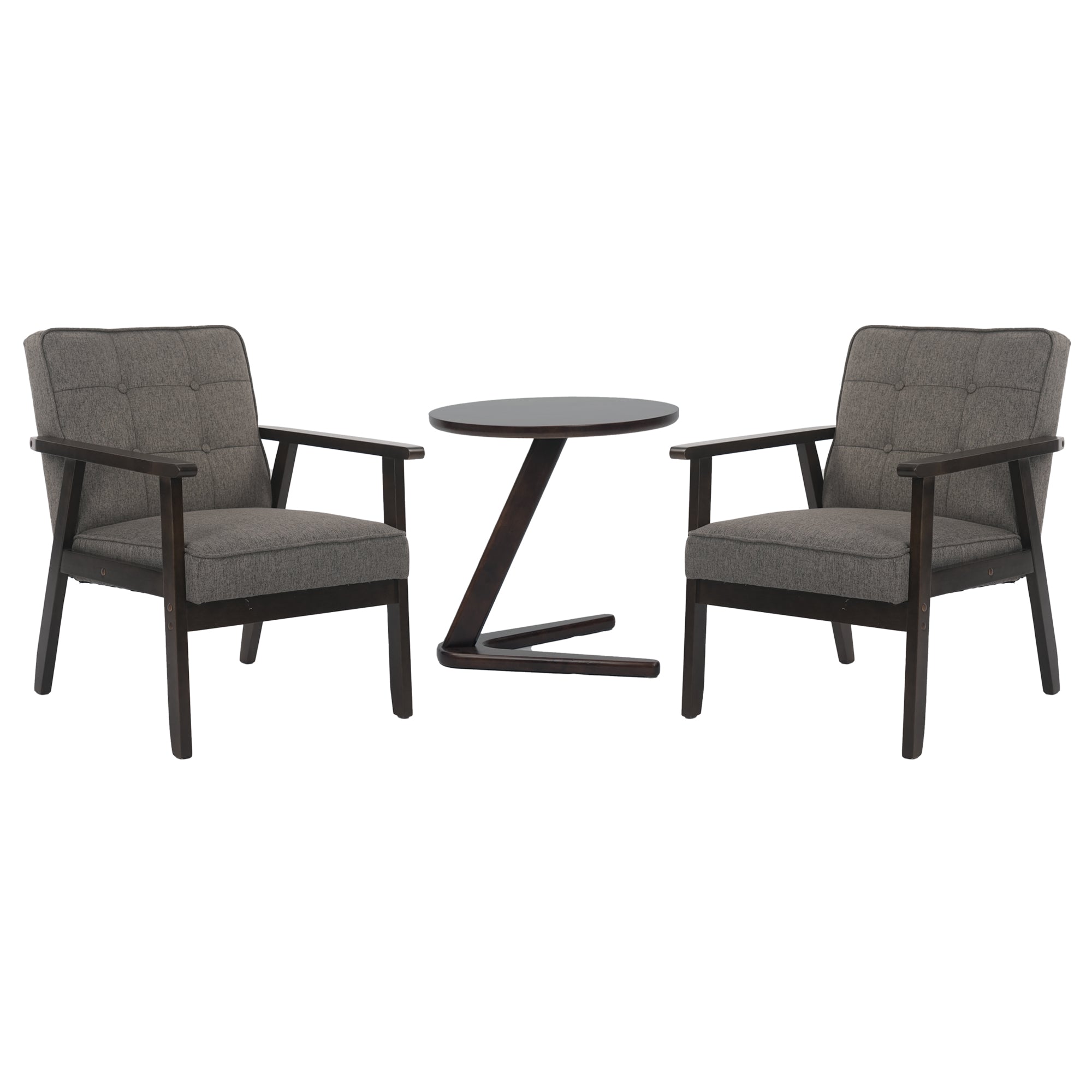 Bring relaxed comfort and coordinated style to your living room, study, or bedroom with this matching set: two cushioned leisure chairs and a wooden coffee table. Each chair features a thick seat cushion and supportive armrests for long-lasting comfort, while the compact coffee table creates a convenient surface for drinks, books, or decor—making the set ideal for conversation corners, reading nooks, or multi-purpose spaces.