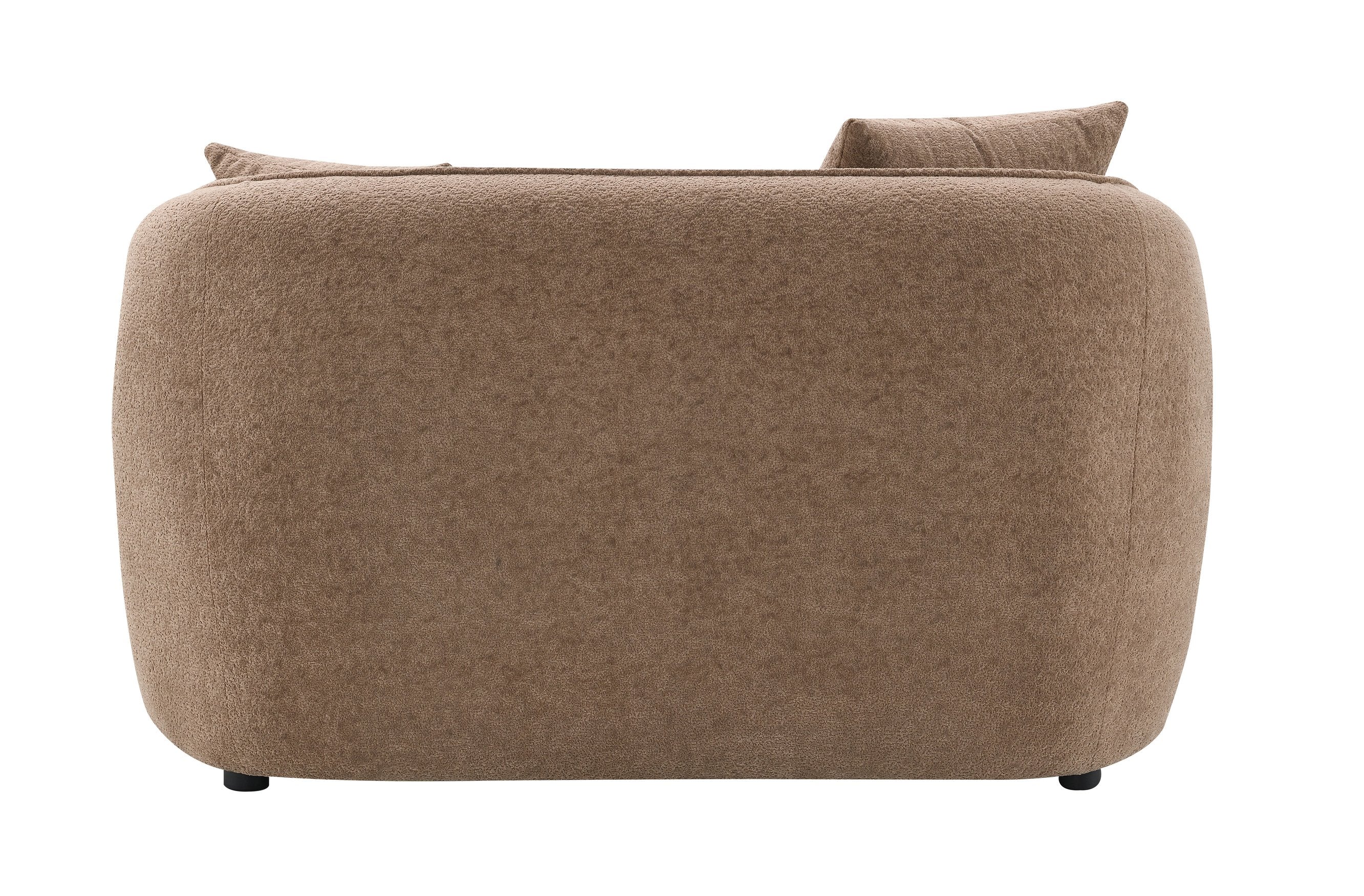 - Experience comfort and style with this elegant loveseat, crafted in a rich brown chenille fabric that adds warmth to any living space. Loveseat comes with 2 matching color toss pillows.