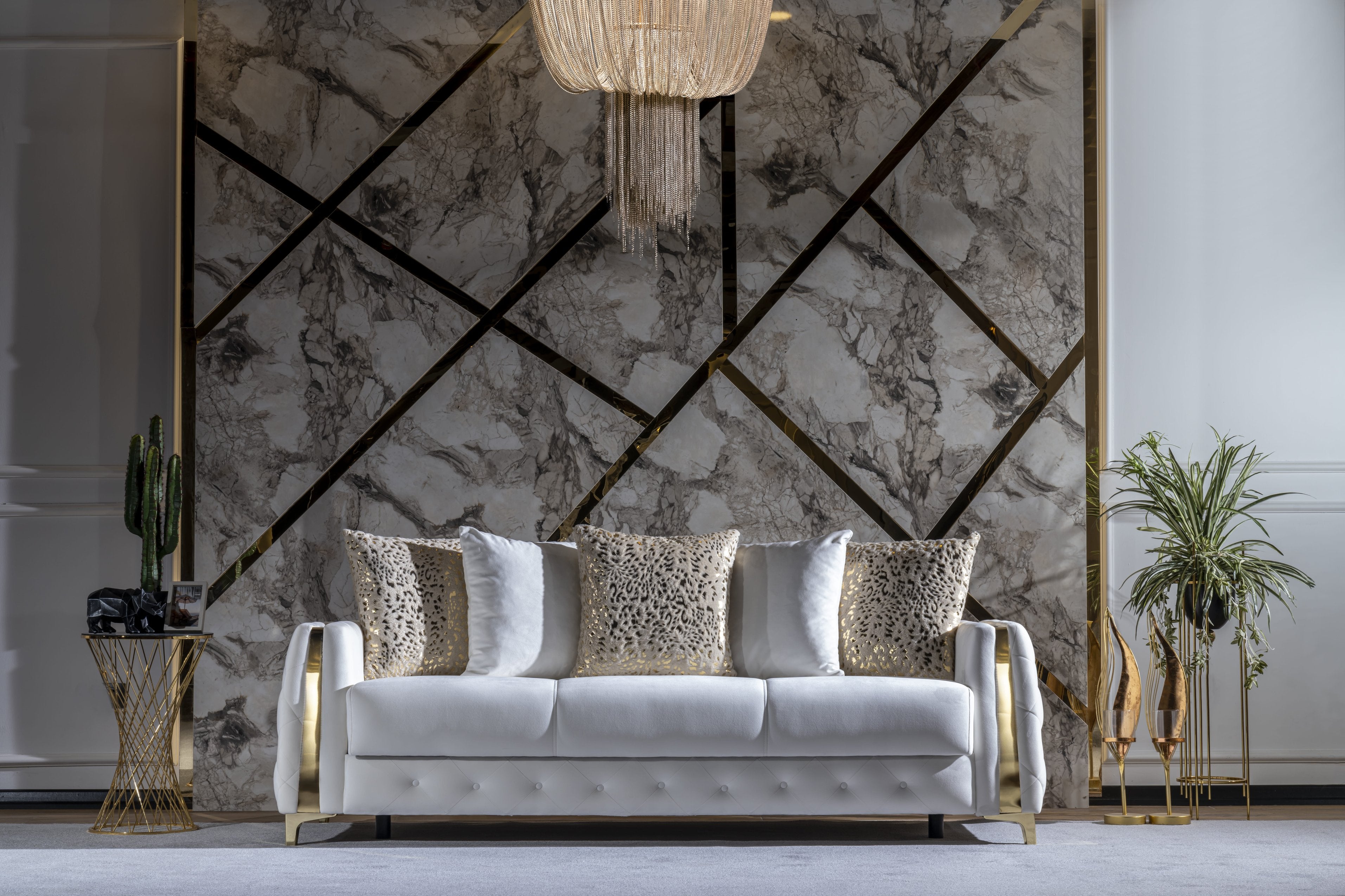 - Style: Contemporary silhouette with neutral off-white upholstery that complements a wide range of decor styles and color palettes.