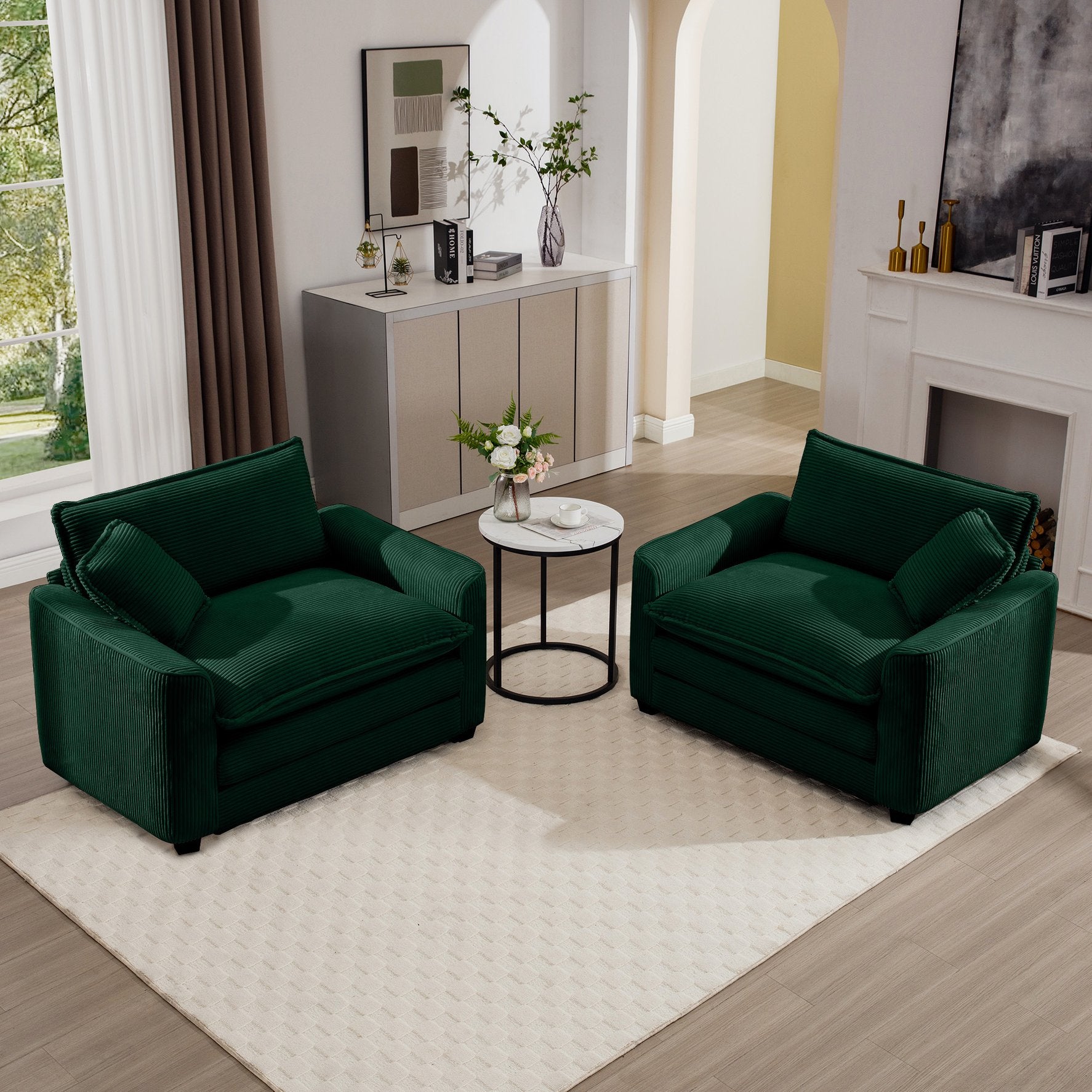Elevate your bedroom or office with this luxurious deep-seated sofa set in rich green corduroy — a refined fusion of classic and modern design that delivers both visual elegance and exceptional comfort. Thoughtfully designed for relaxed lounging and versatile placement, the set includes a roomy main sofa and two single chairs, finished in a soft, textured corduroy that enhances warmth and tactile appeal while maintaining a polished, contemporary silhouette.