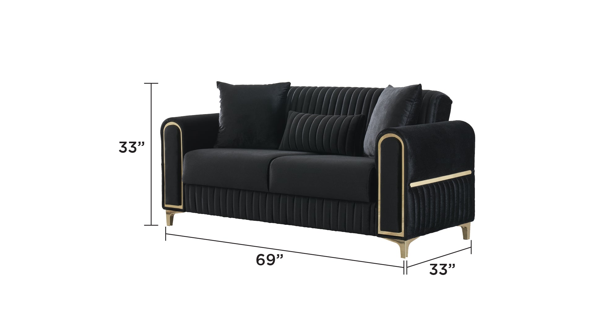 Bring polished elegance and everyday practicality to your living space with this Melody modern velvet upholstered seating set. Carefully crafted from a sturdy wood frame with iron supports and wrapped in sumptuous velvet, the collection blends contemporary vertical tufting and refined gold accents for an upscale look. Designed for comfort and versatility, the set is available as a 2-piece (sofa + loveseat with sleeper) or as this 3-piece configuration (sofa + loveseat + chair), making it ideal for everyday lounging, entertaining, or accommodating overnight guests.