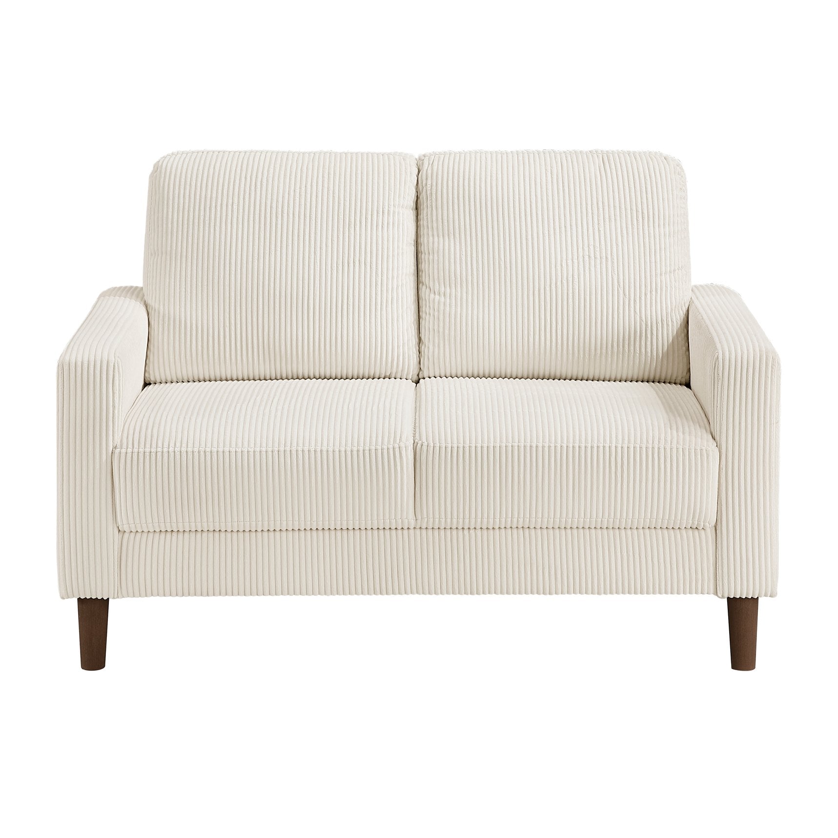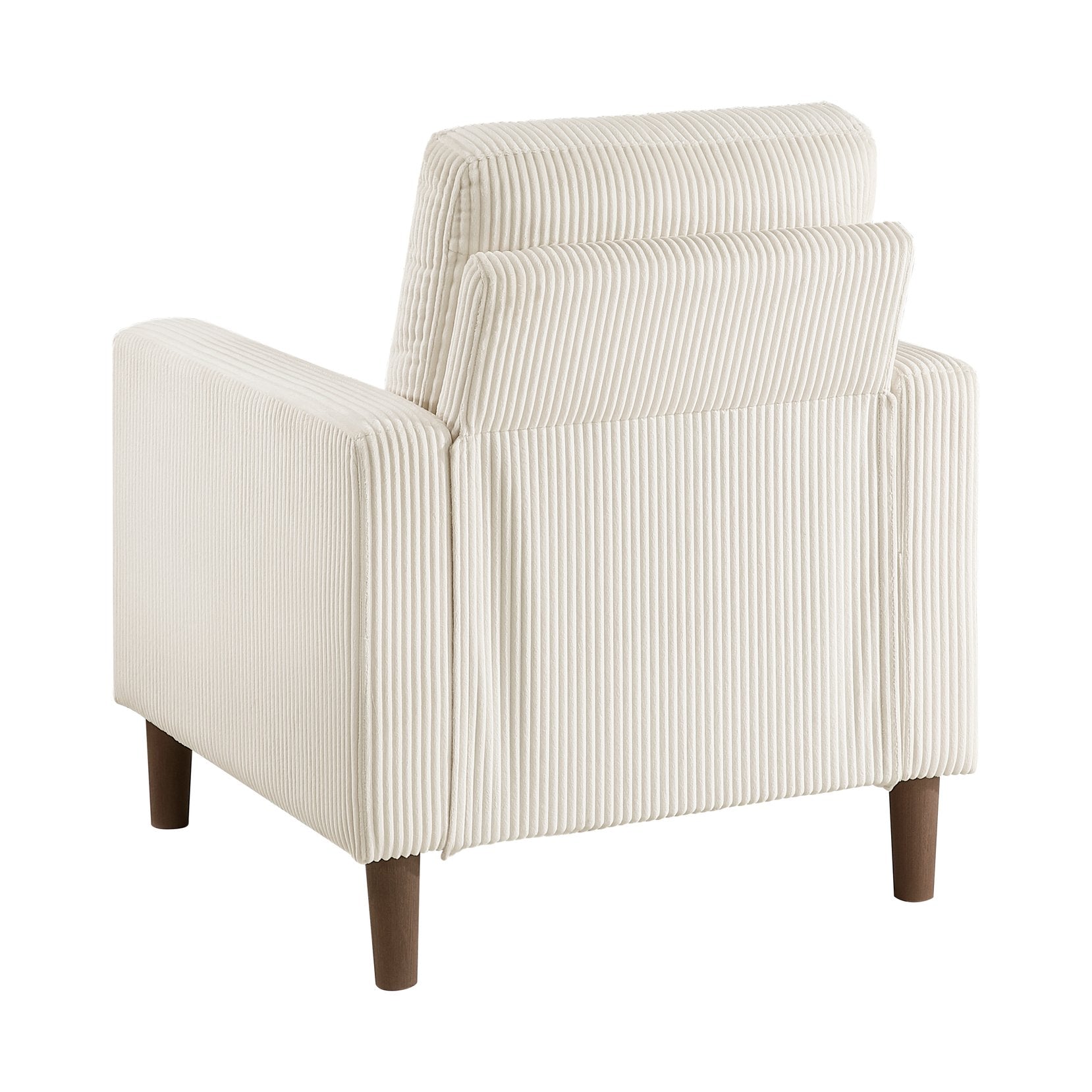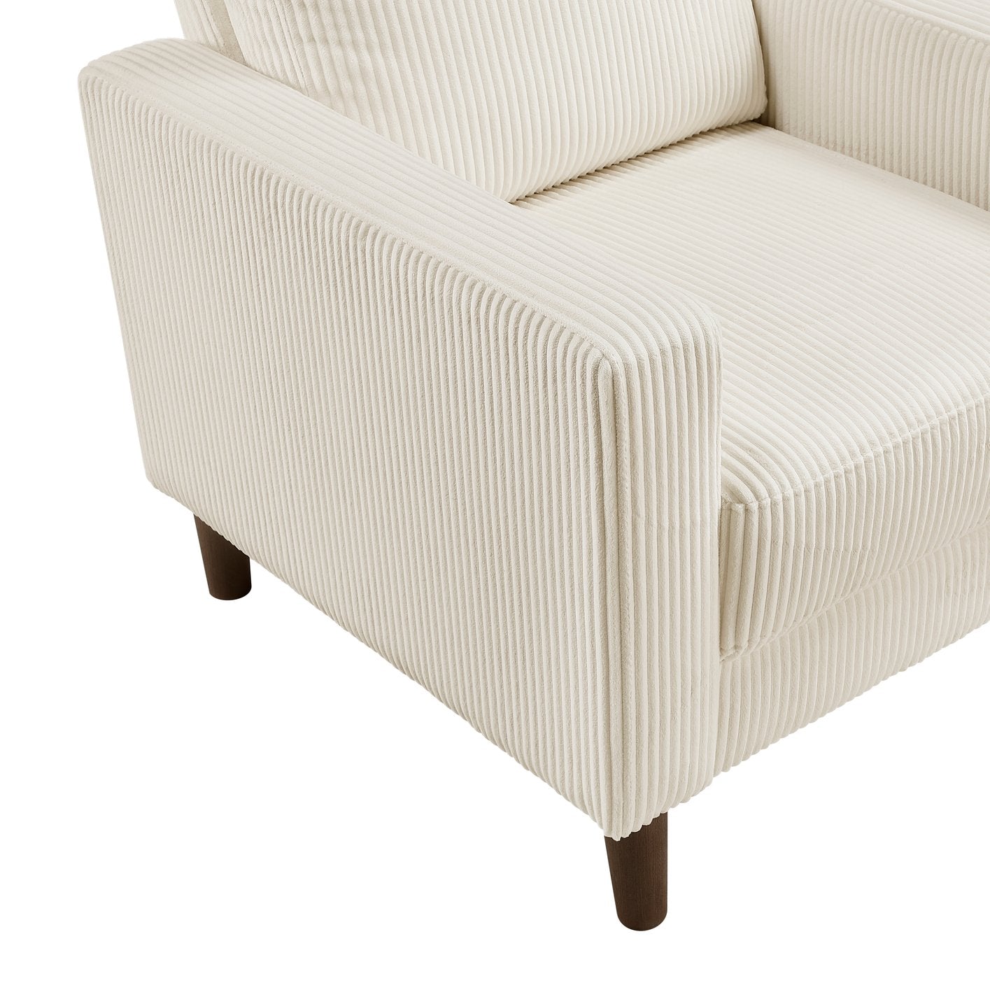 Invite comfort and contemporary style into your living space with this 3-piece sofa set, featuring a sofa, loveseat, and side chair upholstered in soft beige corduroy. Clean lines, plush cushioning, and solid wood legs with a brown faux-wood finish create a warm, modern look that adapts to apartments, family rooms, or formal living areas. Designed for everyday relaxation and easy coordination with a variety of décor, this set balances durability and comfort while remaining straightforward to assemble.