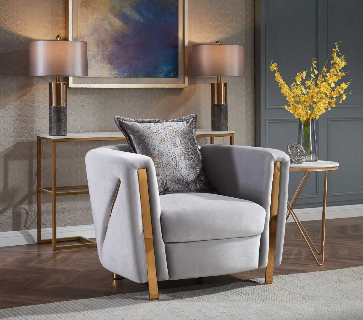 - Finish: Striking gold frame finish for an opulent, contemporary look