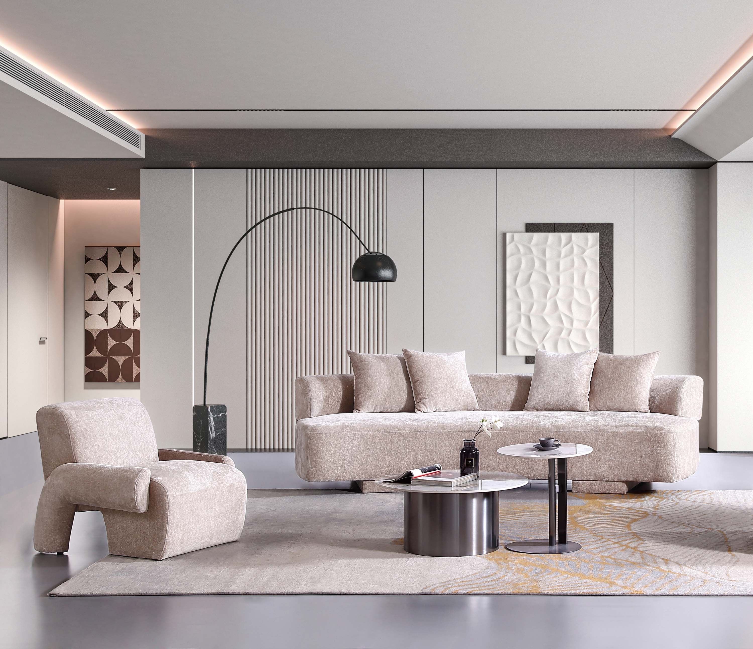 Description for 2-SFAC1669-BE Manhattan Comfort 2- Piece Modern Verandah Chenille 112" Sofa and Accent Chair in Beige