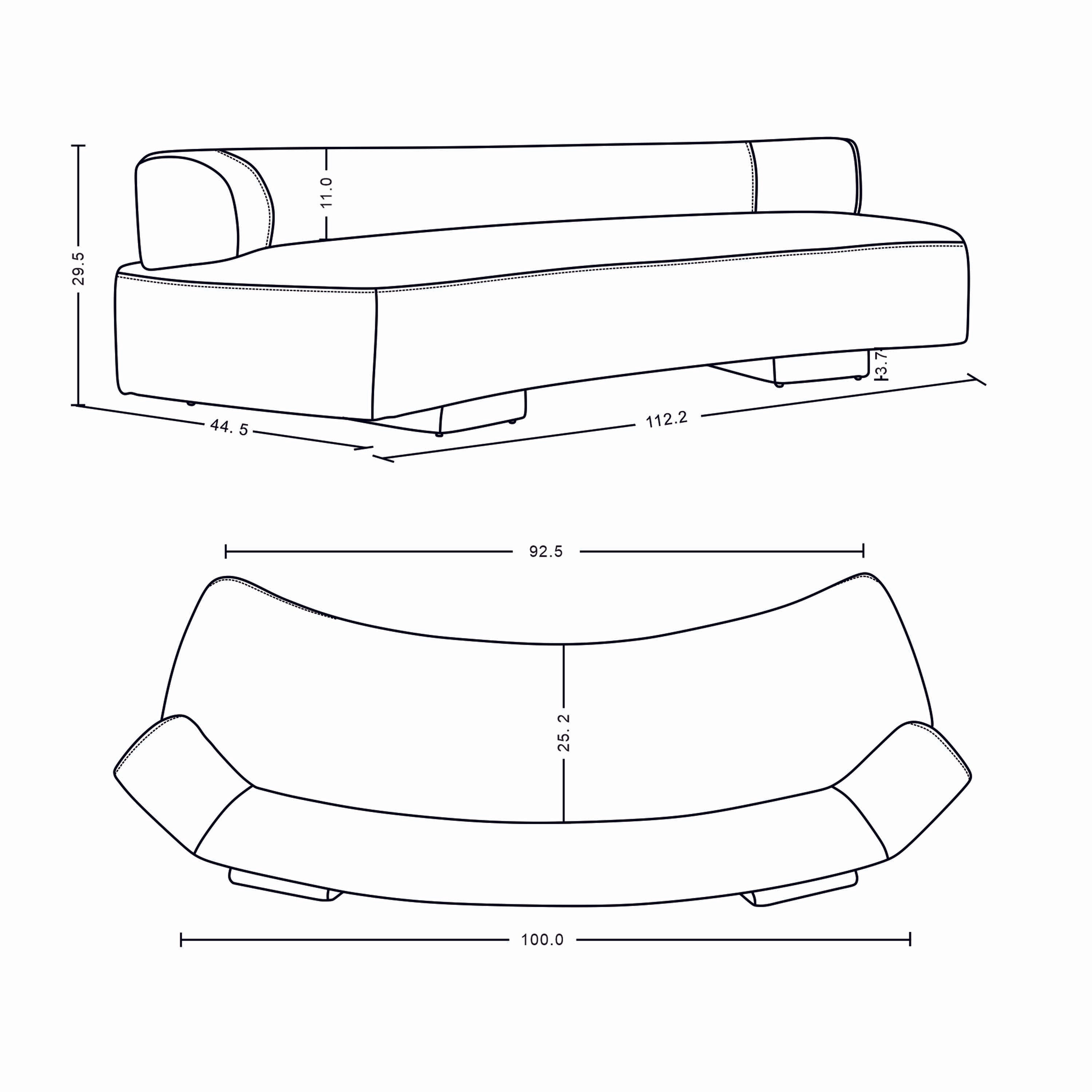 - XL Sofa Measure: 112.2L x 29.5H x 44.5D. Accent Chair Measure: 31.1L x 29.9H x 35.4D.