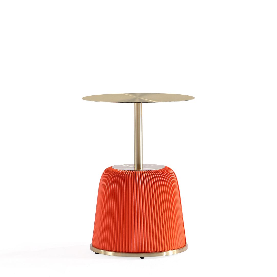 - End Table Features Beautiful Round Gold Steel Table Top.