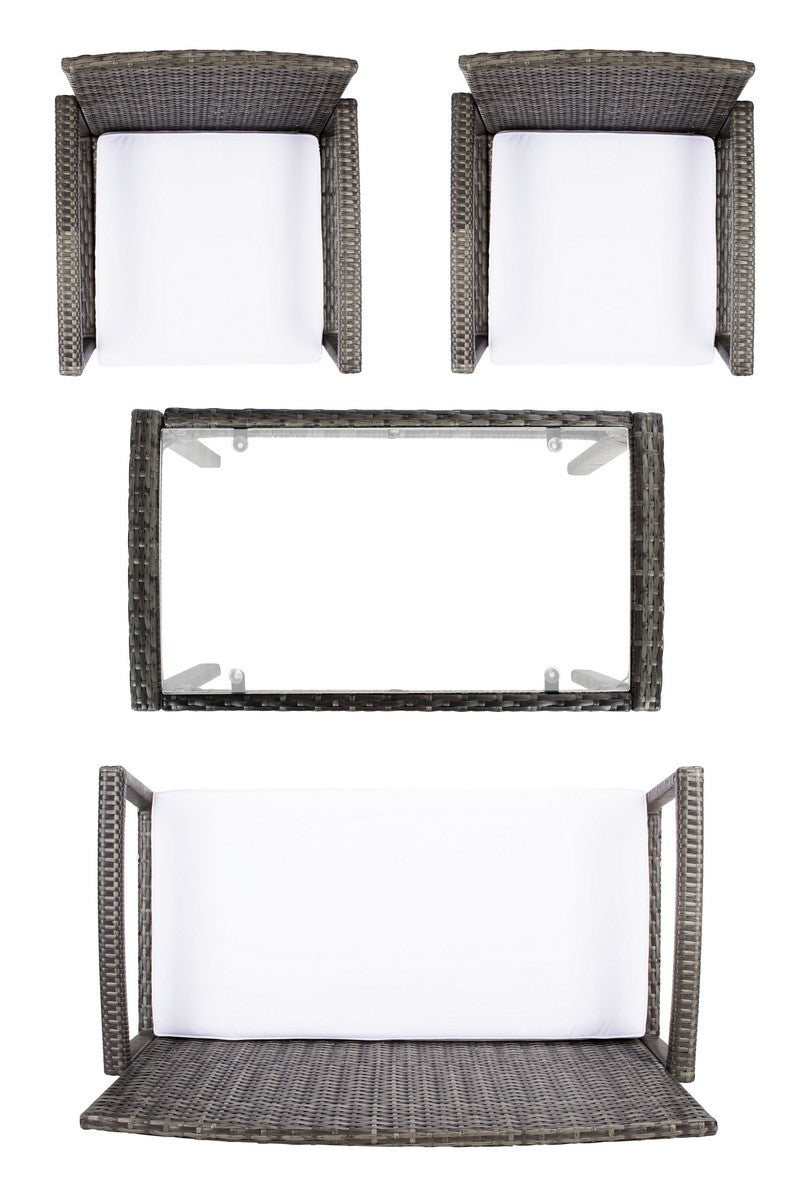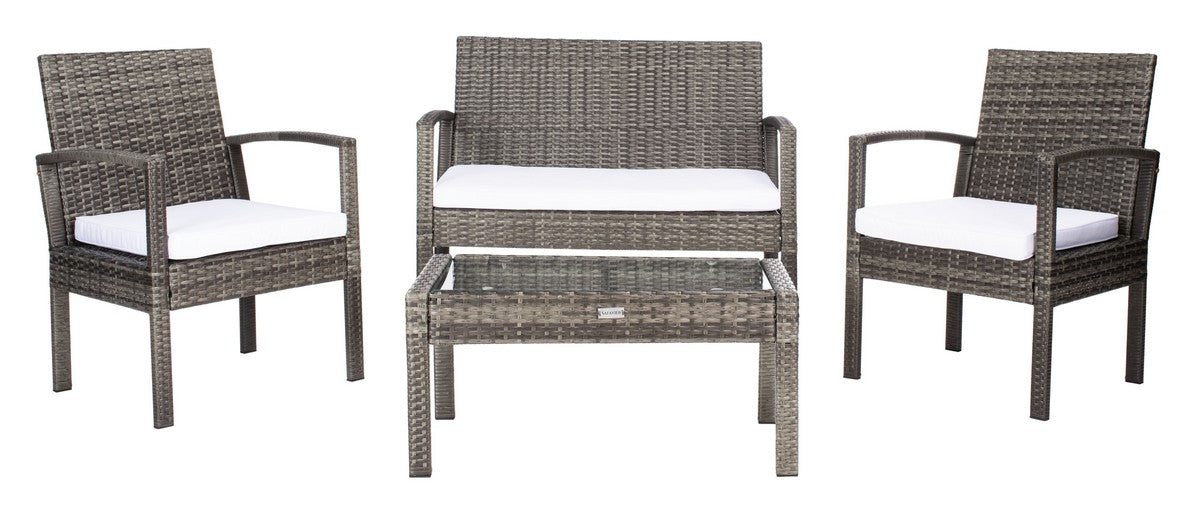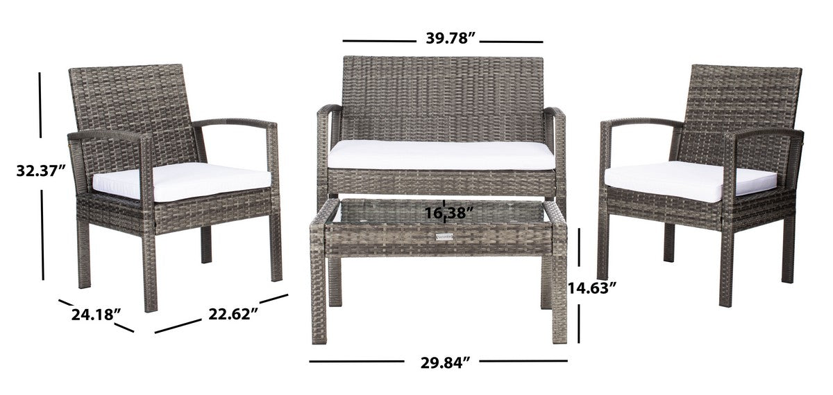 Designed to bring a tropical resort vibe to your porch or patio, the Bassey Living Set is extravagant staycation outdoor decor. Bassey complements any taste or style with its woven grey frames and matching cushions. Its glass topped coffee table is ideal for holding candles, drinks, or canapes as you relax the day away.