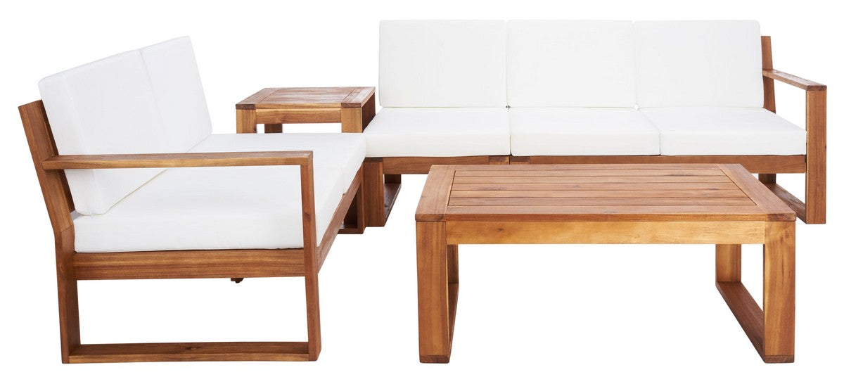 Ideal for outdoor entertaining, this Catryn Living Set is a designer favorite. Catryn’s armchair, sofa, accent table, and coffee table are easily styled as a sectional space, making it the ideal conversation area, while its clean lines and plush weather-strong cushions are the epitome of contemporary chic.