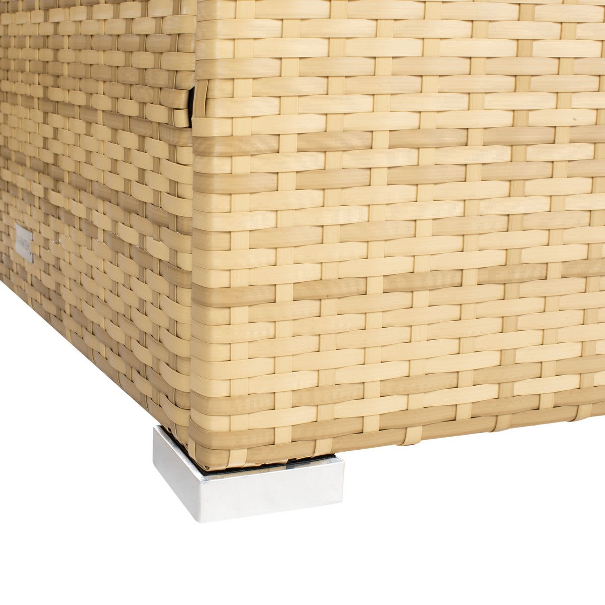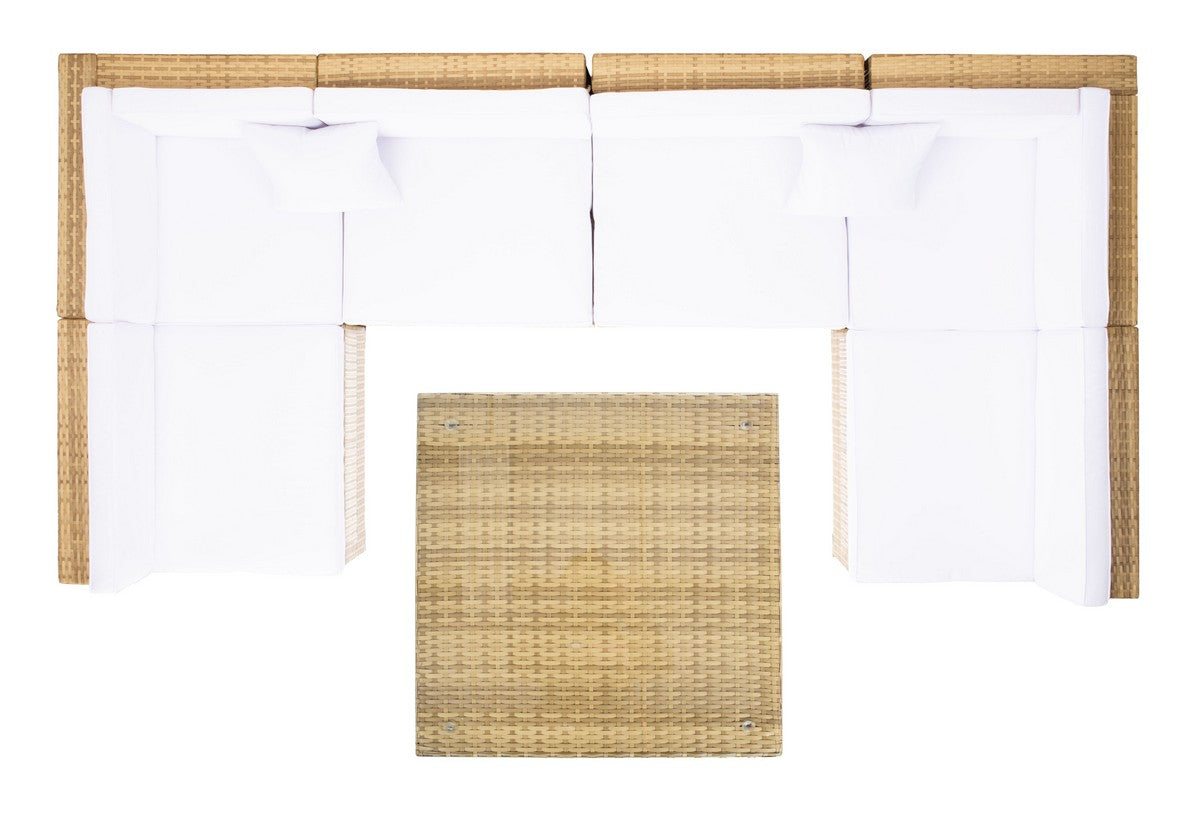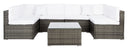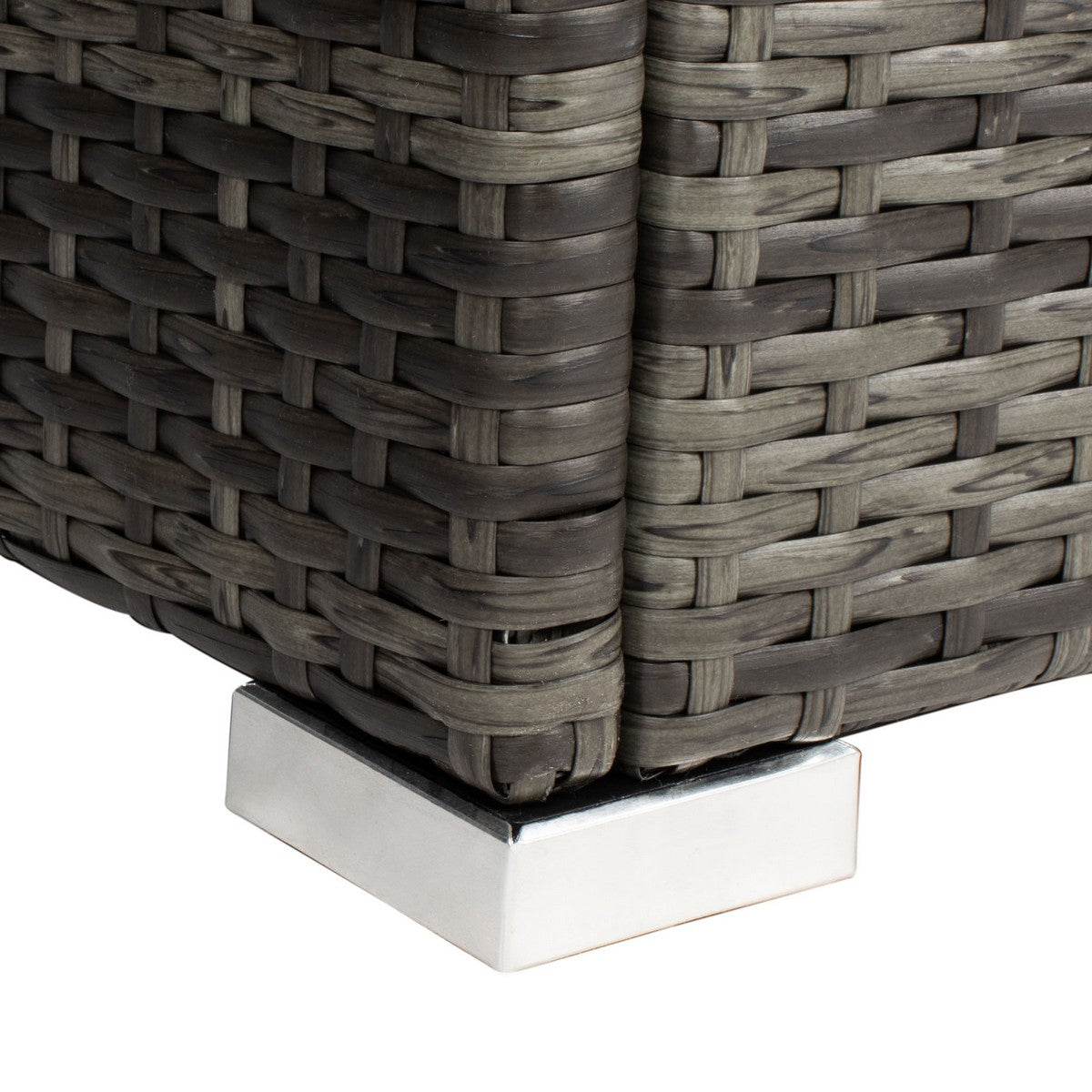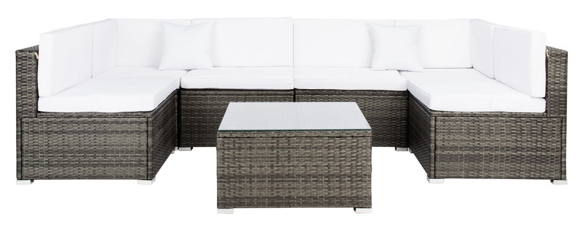 The living room sectional moves outdoors with fabulous modern flair in this Diona Living Set. Strong and chic, Diona’s texture rich grey frames support luxurious matching cushions, making for lavish outdoor lounging. Diona includes a matching glass topped coffee table to complete the look.