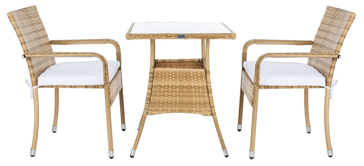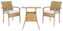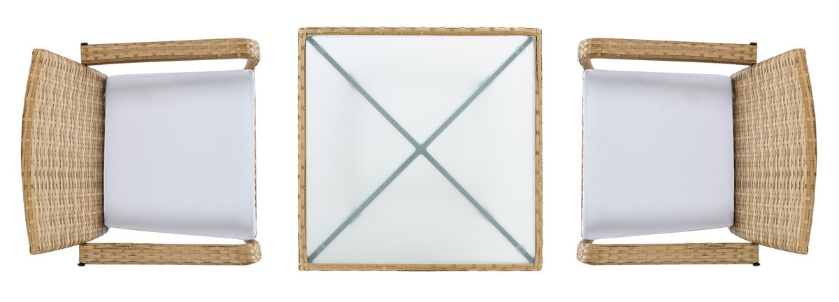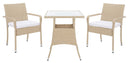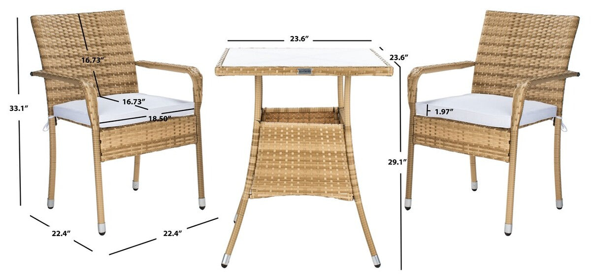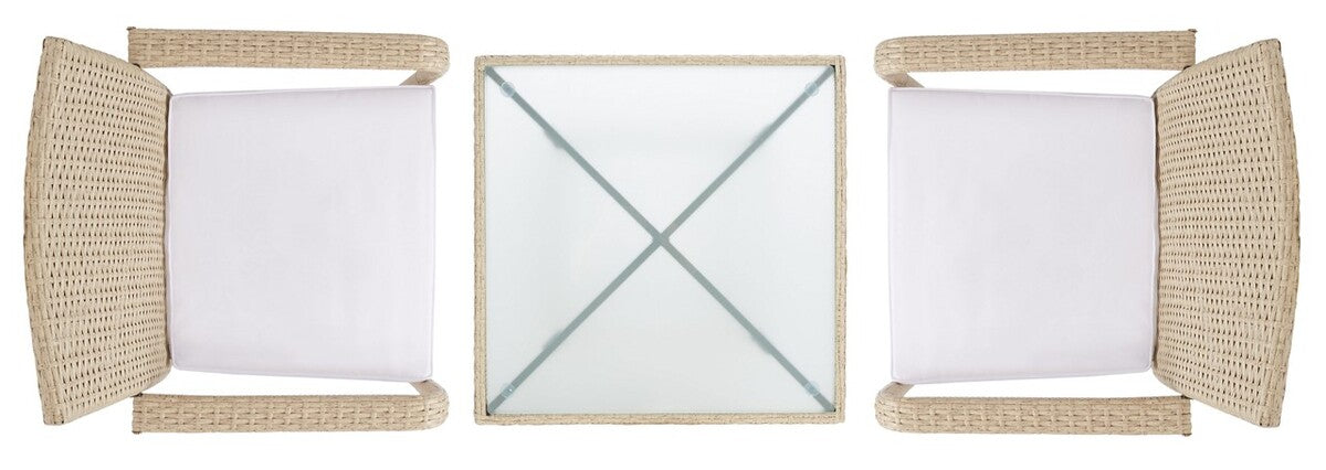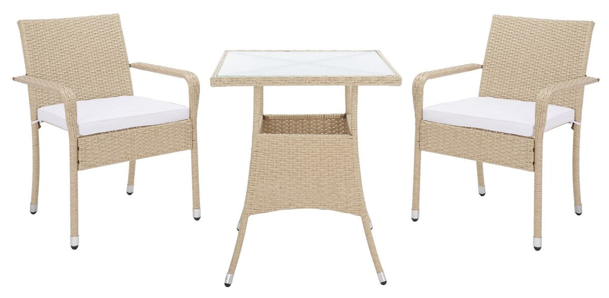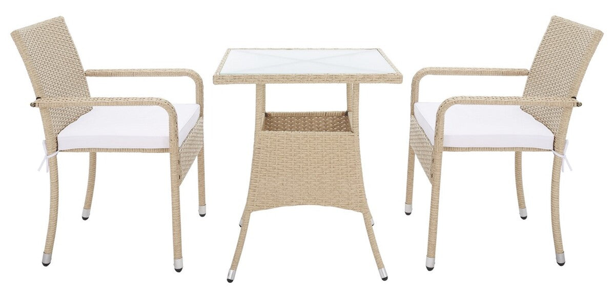 Enjoy al fresco dining with this contemporary-chic Laban Bistro Set. The subtly reclined backs and plush white cushions of Laban’s two beige PE rattan chairs allow for maximum relaxation, and its matching glass-topped table is effortlessly elegant.