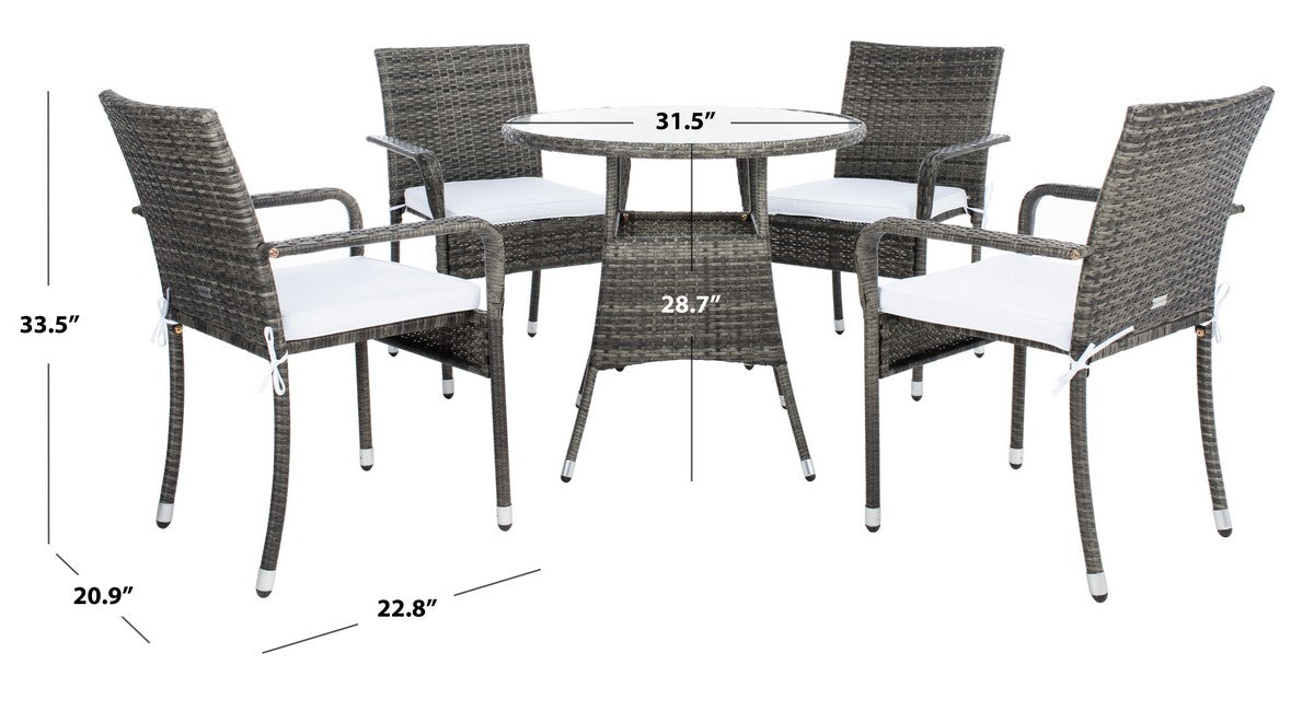 - Set Dimensions ( W * D * H): Table: 31.5" X 31.5" X 28.7"Chair: 20.9" X 22.8" X 33.5"