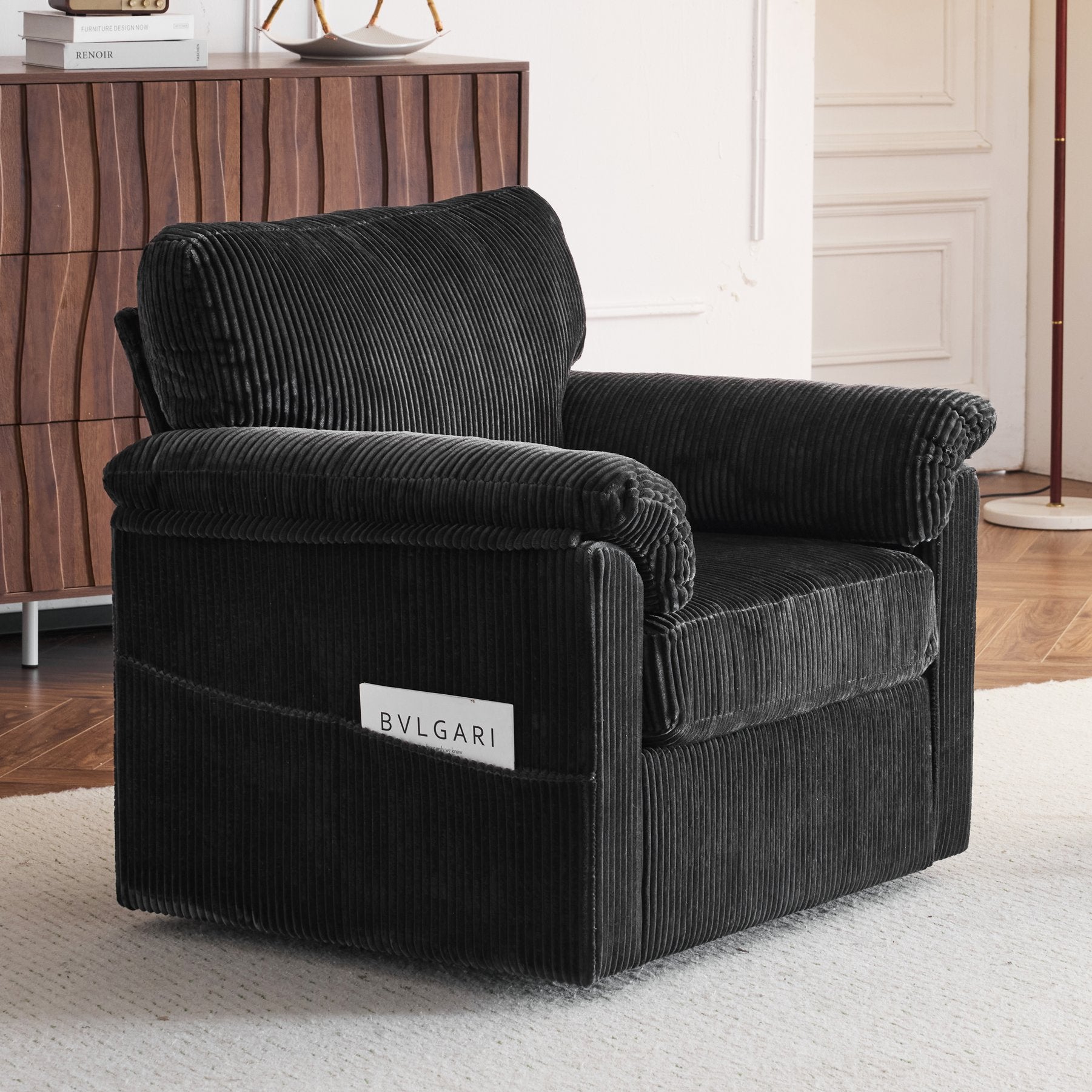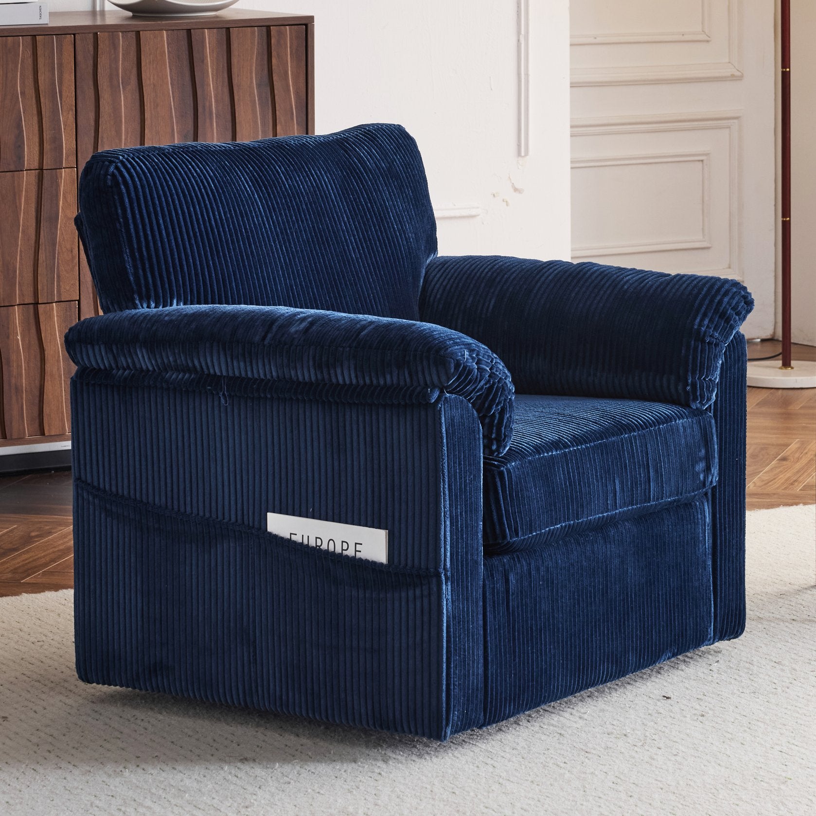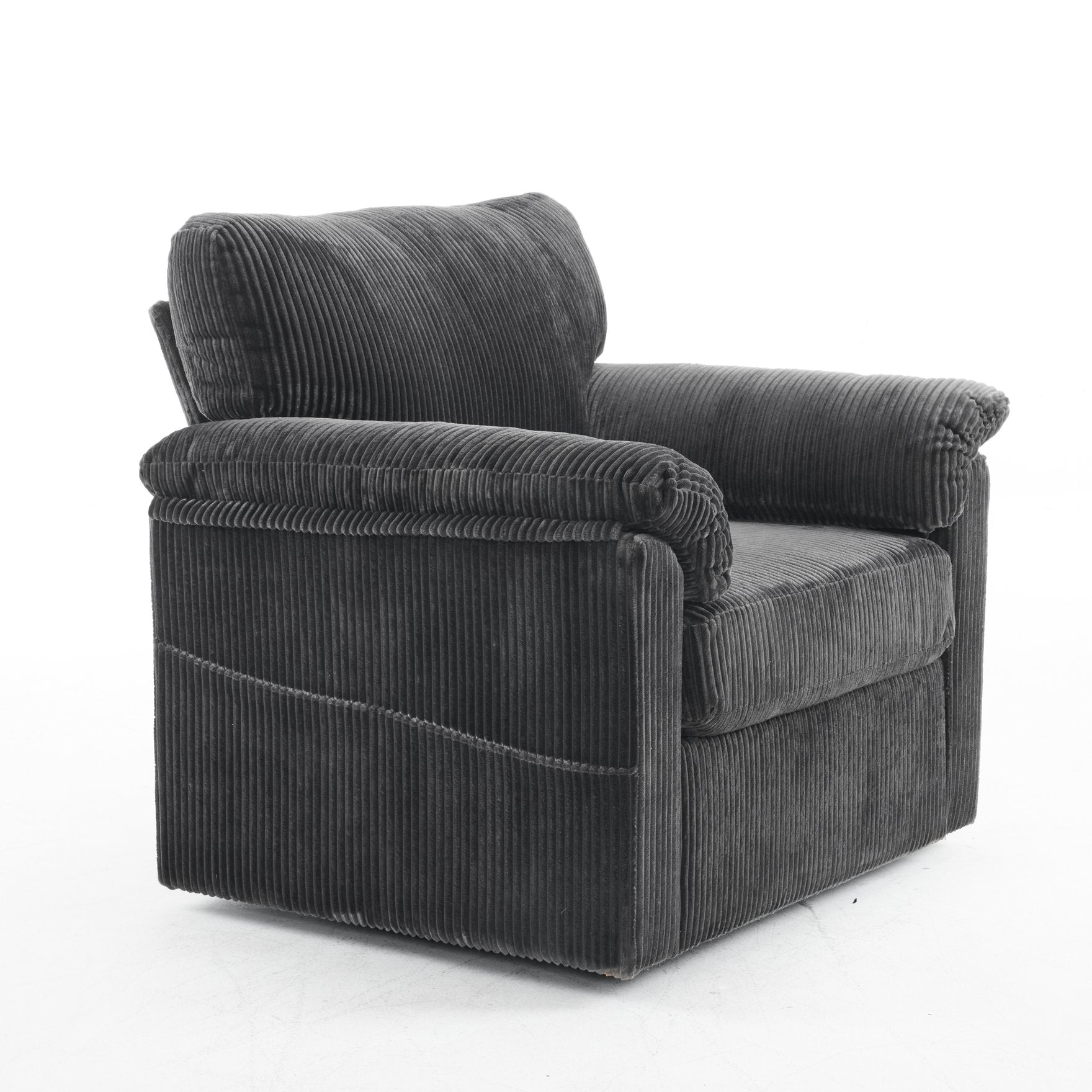 Enjoy plush, cloud-like comfort with this oversized swivel lounge chair—designed for lounging, reading, or adding a cozy focal point to small spaces. Upholstered in soft chenille corduroy, it pairs supportive construction with a relaxed, furniture-style silhouette and a smooth 360° swivel for versatile placement in living rooms, bedrooms, offices, or kids’ rooms.