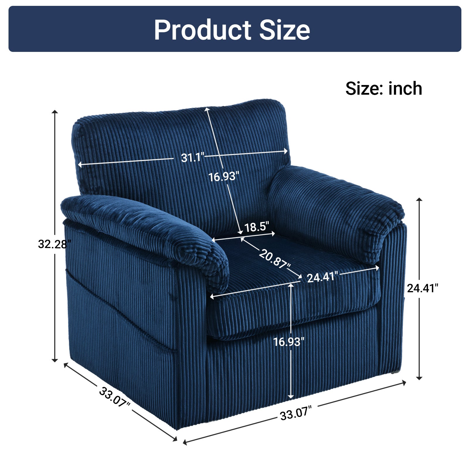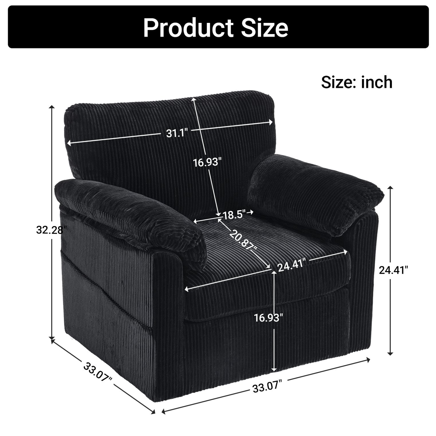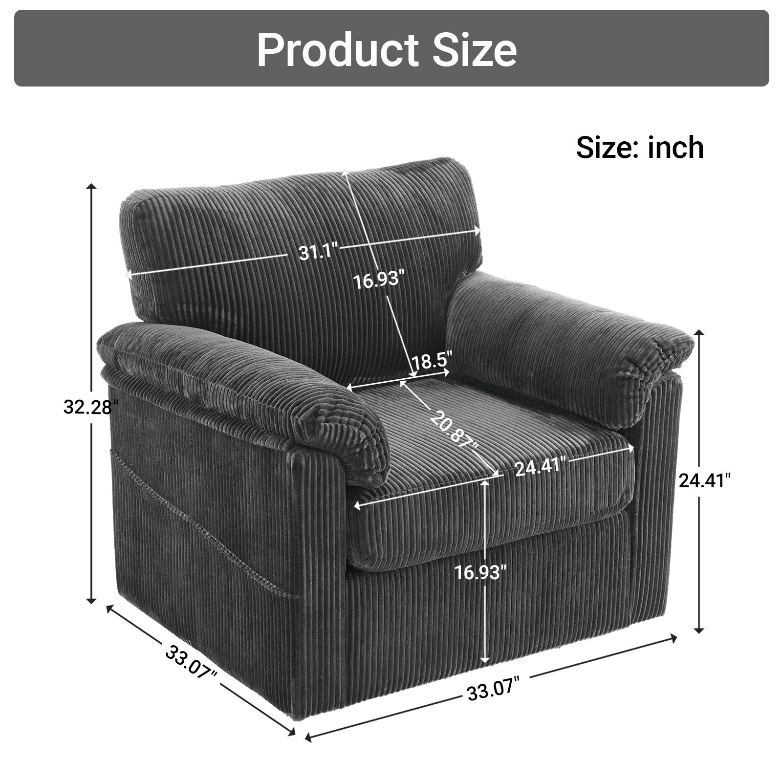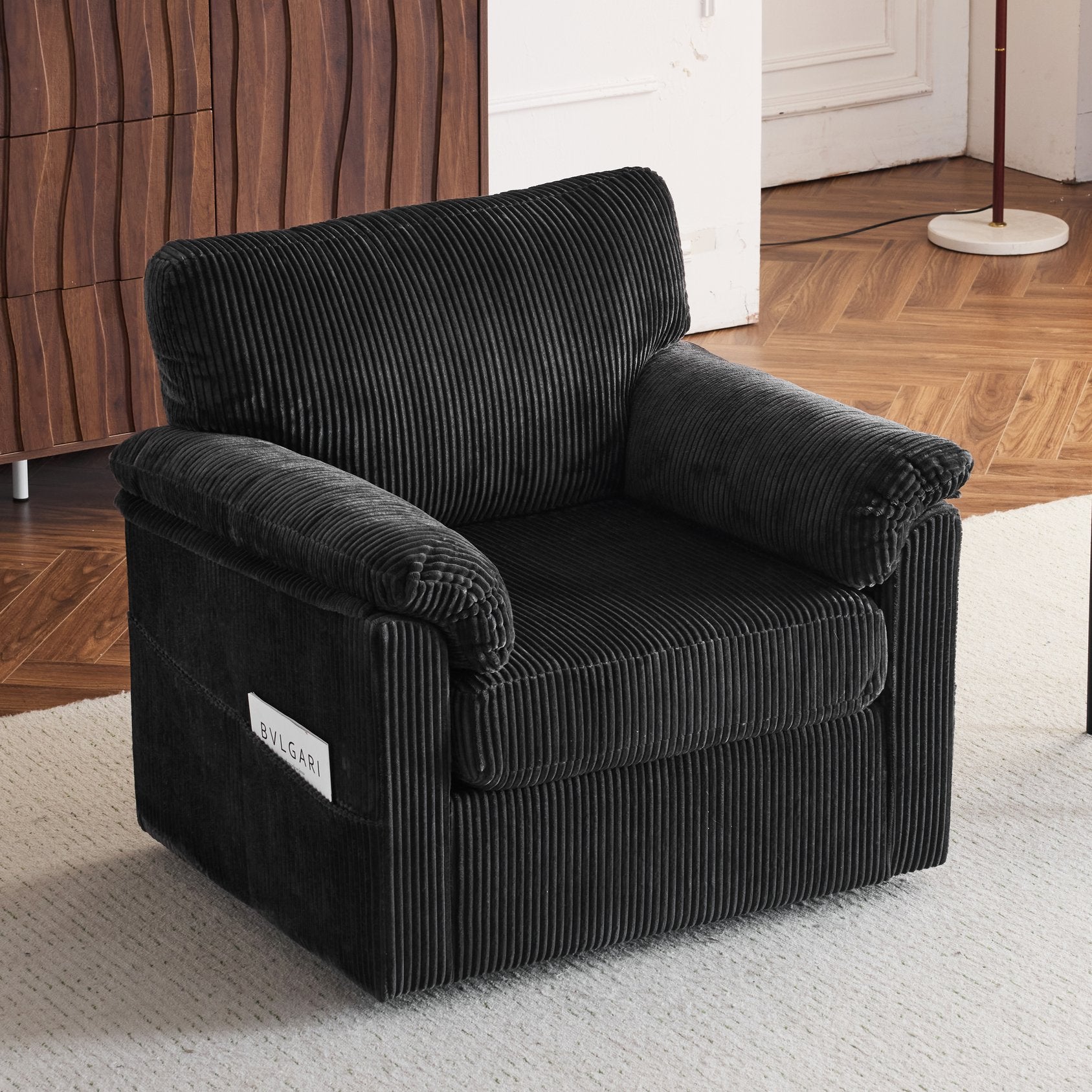 Enjoy plush, cloud-like comfort with this oversized swivel lounge chair—designed for lounging, reading, or adding a cozy focal point to small spaces. Upholstered in soft chenille corduroy, it pairs supportive construction with a relaxed, furniture-style silhouette and a smooth 360° swivel for versatile placement in living rooms, bedrooms, offices, or kids’ rooms.