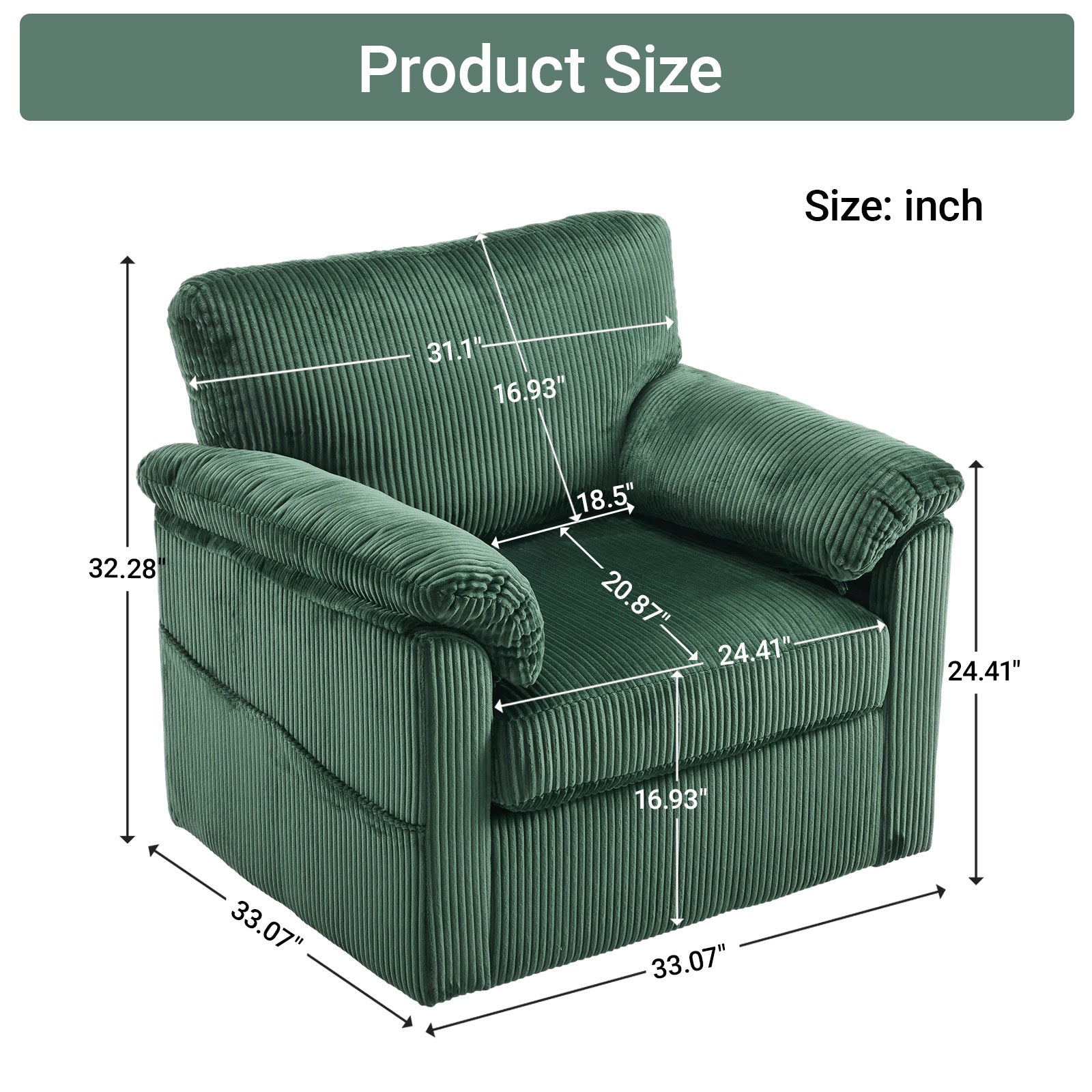 - Soft Chenille Corduroy Upholstery: Plush, breathable fabric that feels luxurious and is comfortable for extended sitting periods