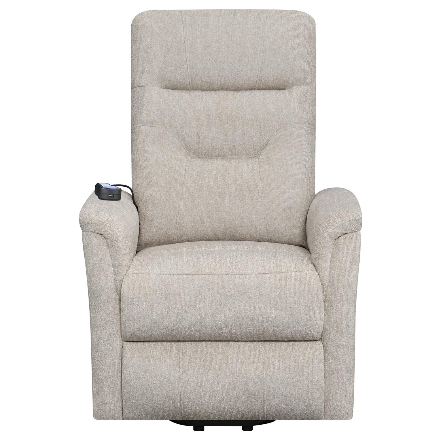 Enjoy greater independence and everyday comfort with this beige upholstered power lift recliner. Thoughtfully designed for ease of use, it combines a smooth power lift mechanism with plush memory-foam seating and durable performance chenille upholstery — ideal for relaxing, reading, or easing the effort of standing. Practical touches like a side storage pocket and sturdy construction make it a dependable addition to any living space.