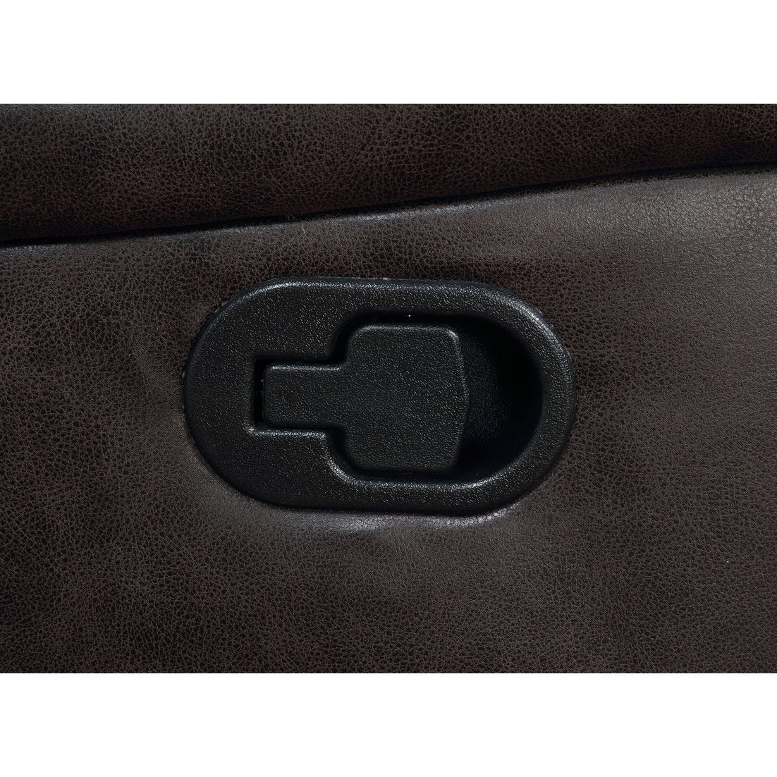 - Glider recliner upholstered in taupe leatherette combines stylish design with easy-to-clean and durable material