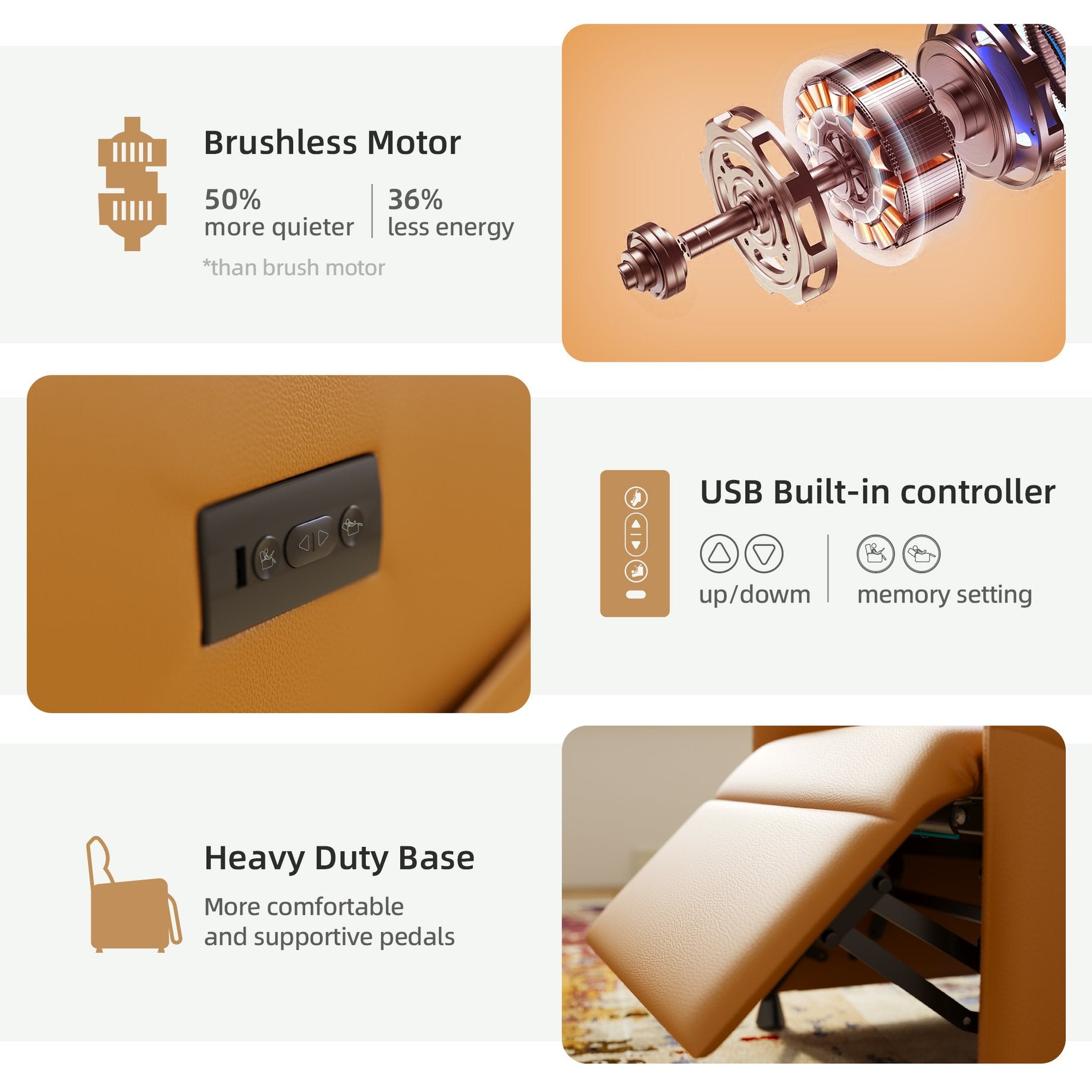 - ⚠ Important Note: When adjusting this electric sofa, the footrest and backrest move together—you cannot raise the footrest while keeping the backrest upright.
