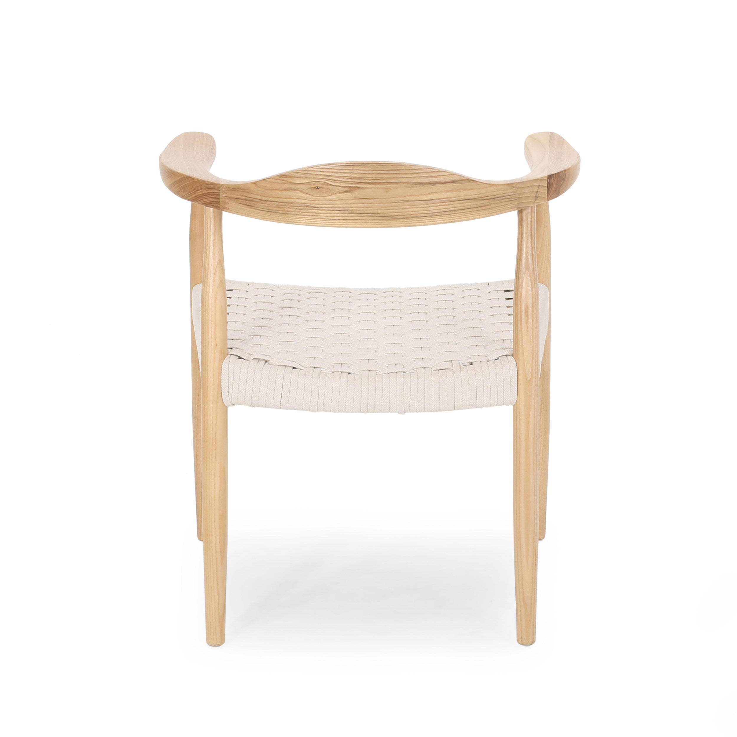 Bring refined mid-century modern style and exceptional craftsmanship to your living or outdoor space with this handcrafted arm chair. Combining a smooth ash wood frame with an intricate flat woven rope seat and back, it delivers comfort, durability, and a striking textured appearance that complements contemporary and classic decor alike. Ready to use right out of the box, this chair is an elegant focal point for lounges, patios, dining nooks, or reading corners.