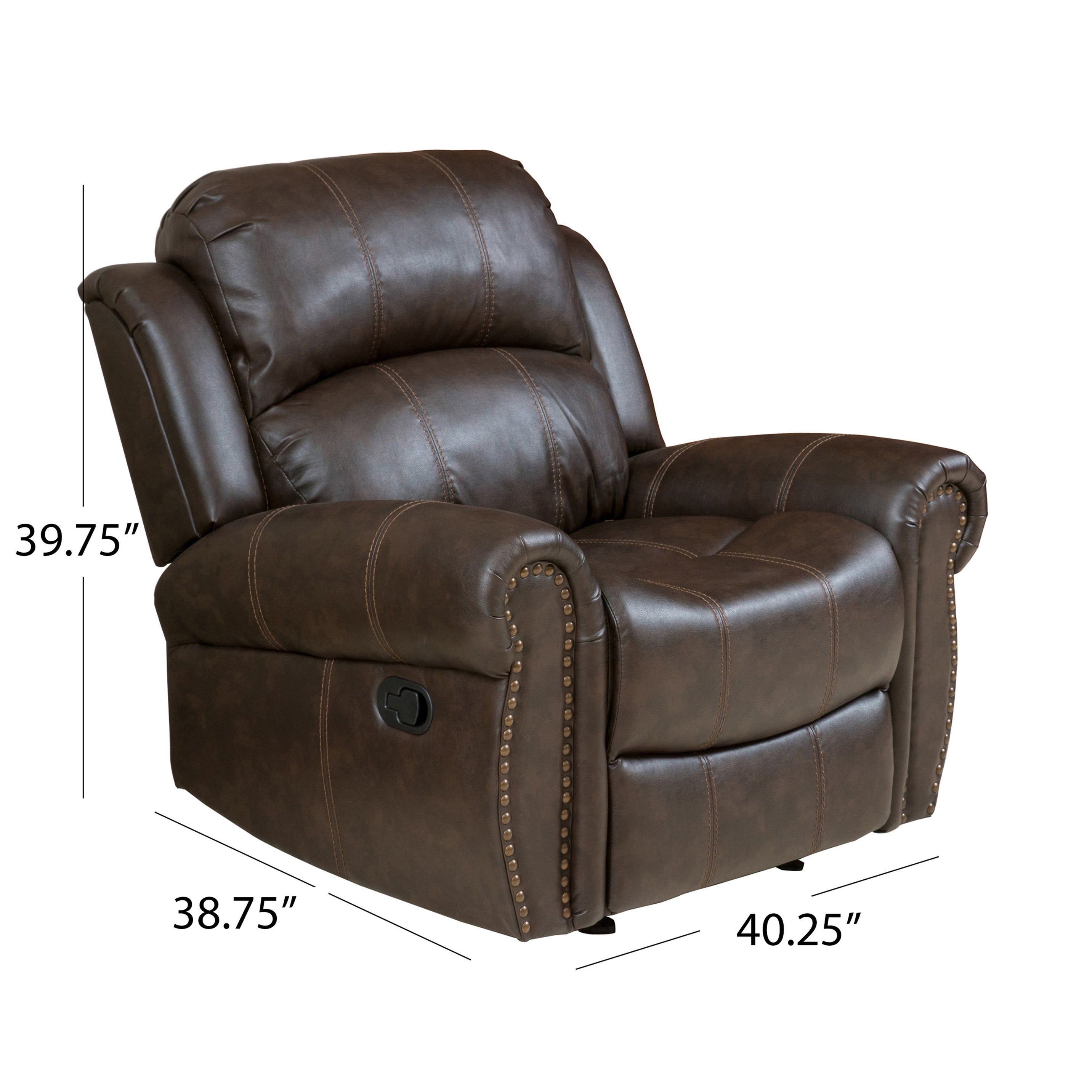 - Kick back at the end of the day with this manual recliner + glider and a classic aesthetic