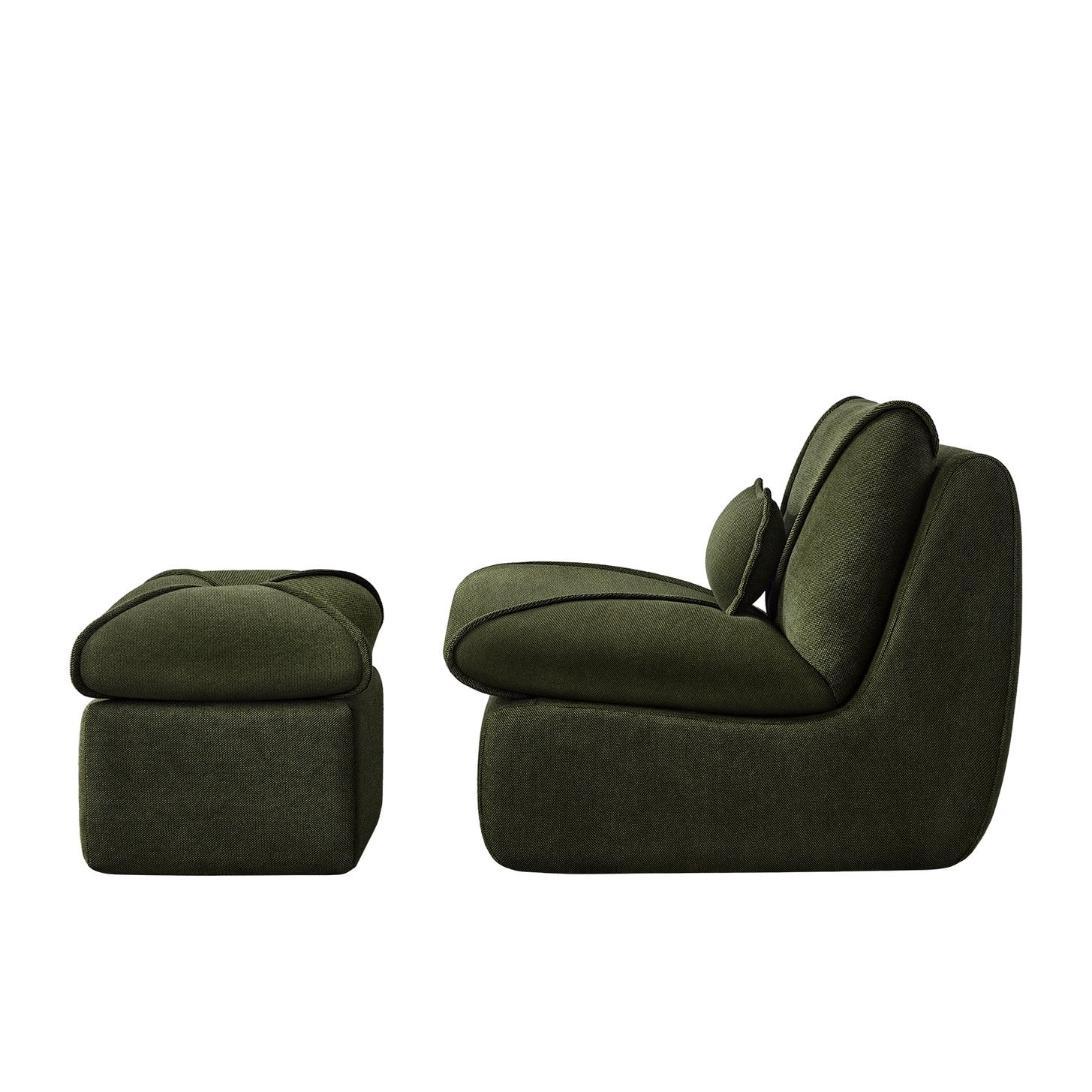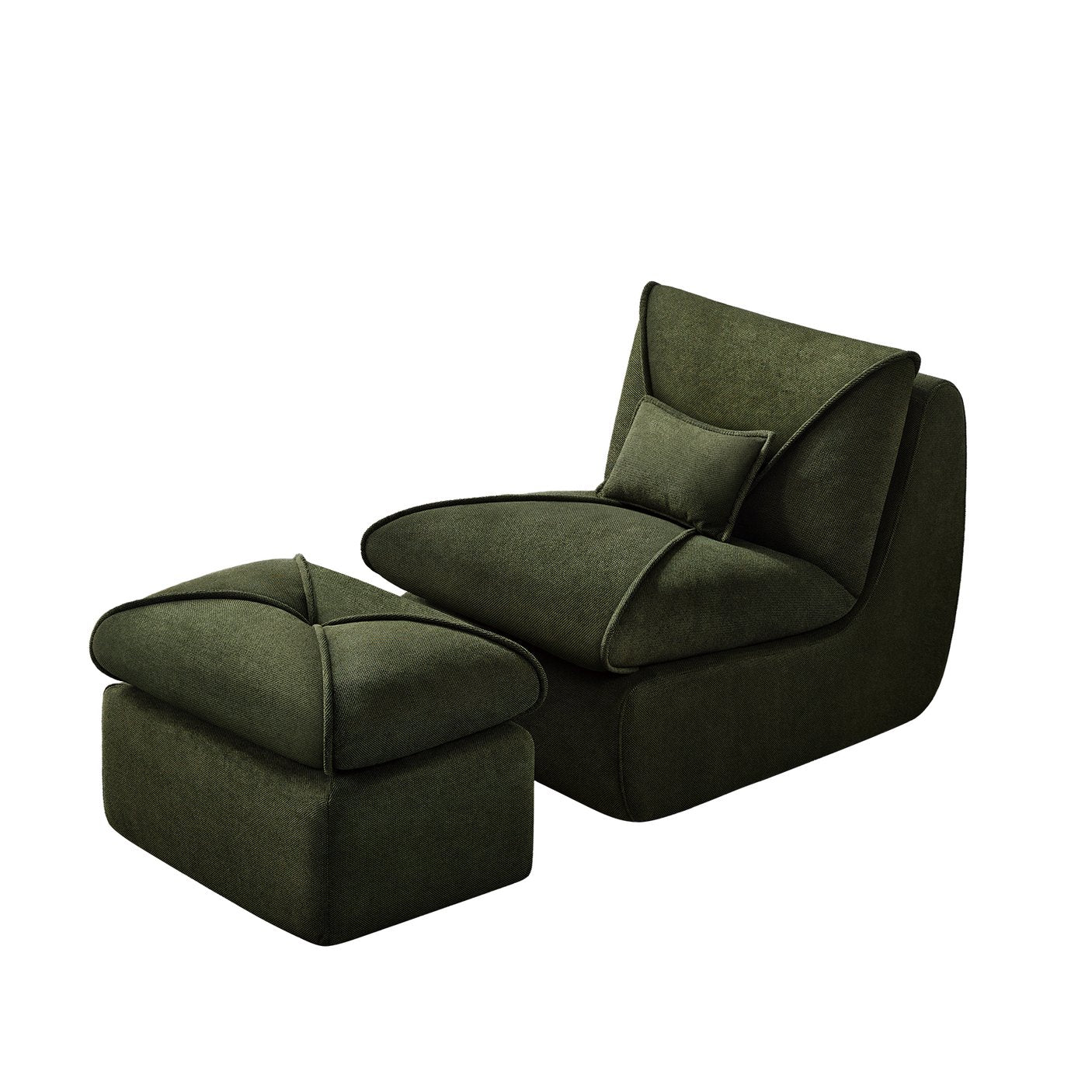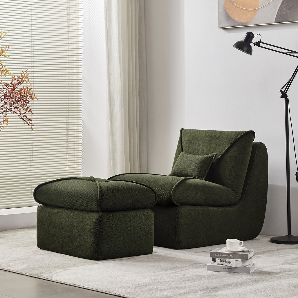 Compact comfort meets modern style in this compressed lounge chair with ottoman — an ideal solution for small living rooms, bedrooms, studios, or apartment nooks. Upholstered in soft chenille with high‑density foam cushioning and removable back pillows, this set delivers cozy support without sacrificing space or contemporary appeal. The neutral, streamlined silhouette pairs easily with a variety of decor while the included ottoman extends legroom for full relaxation.