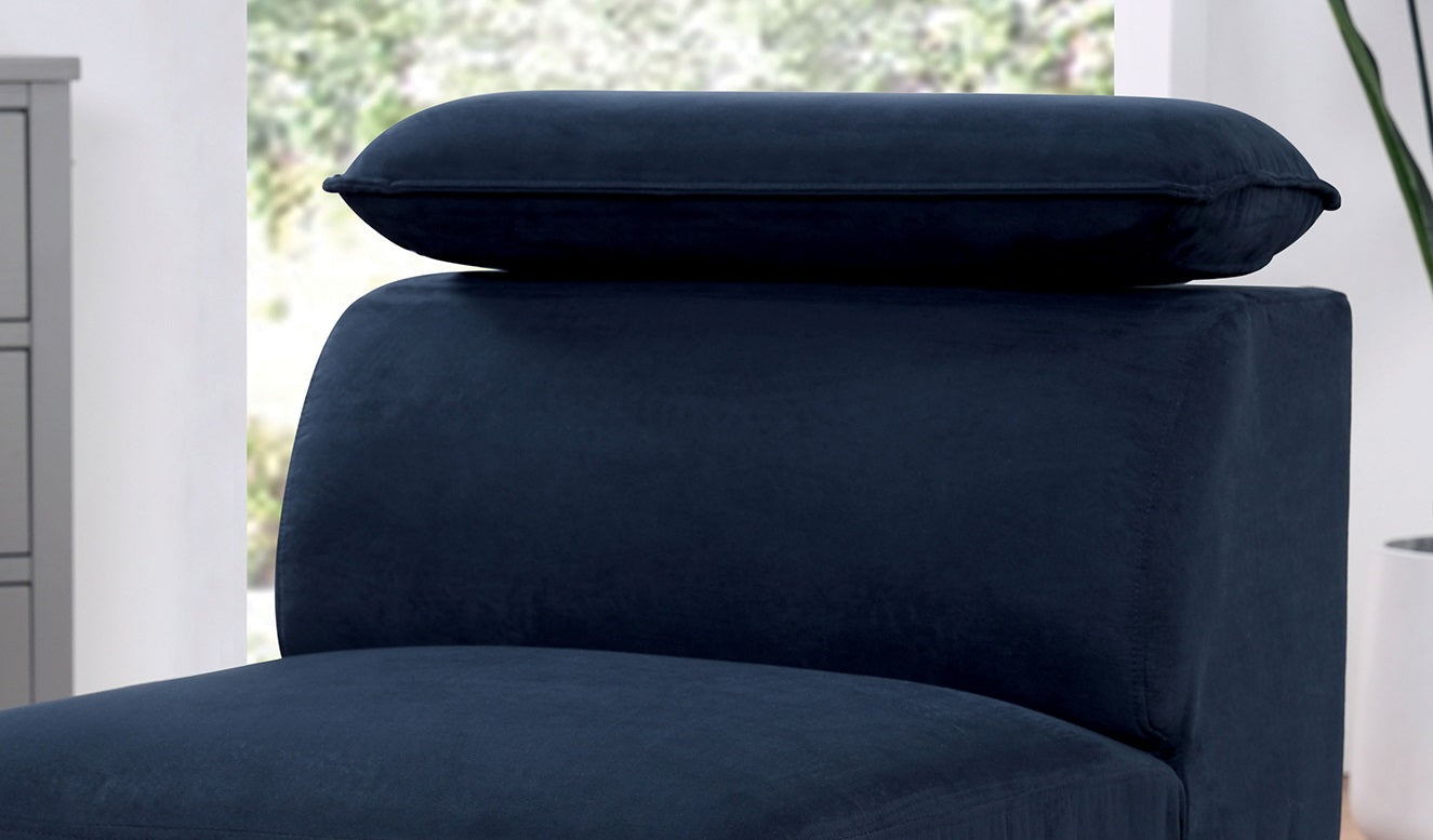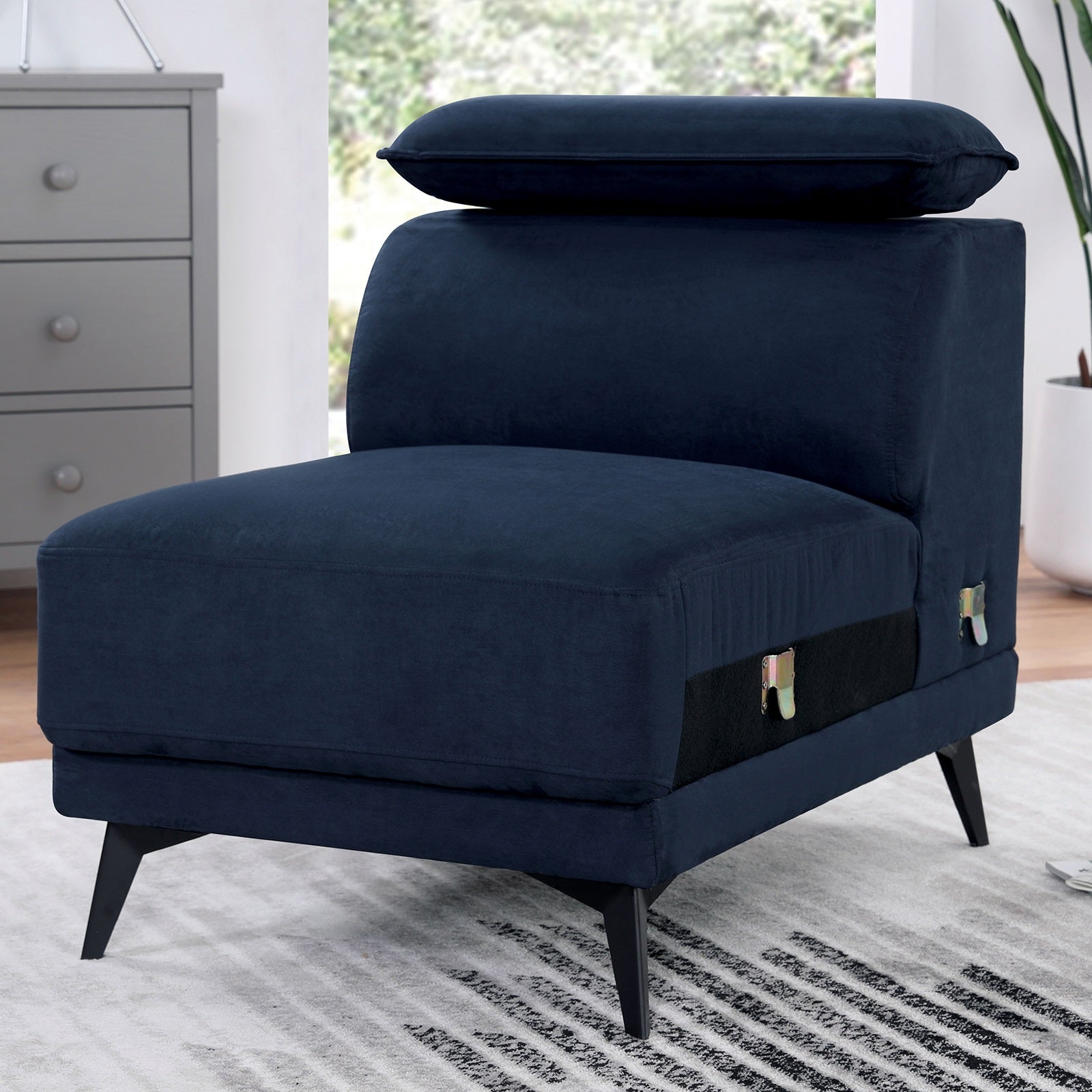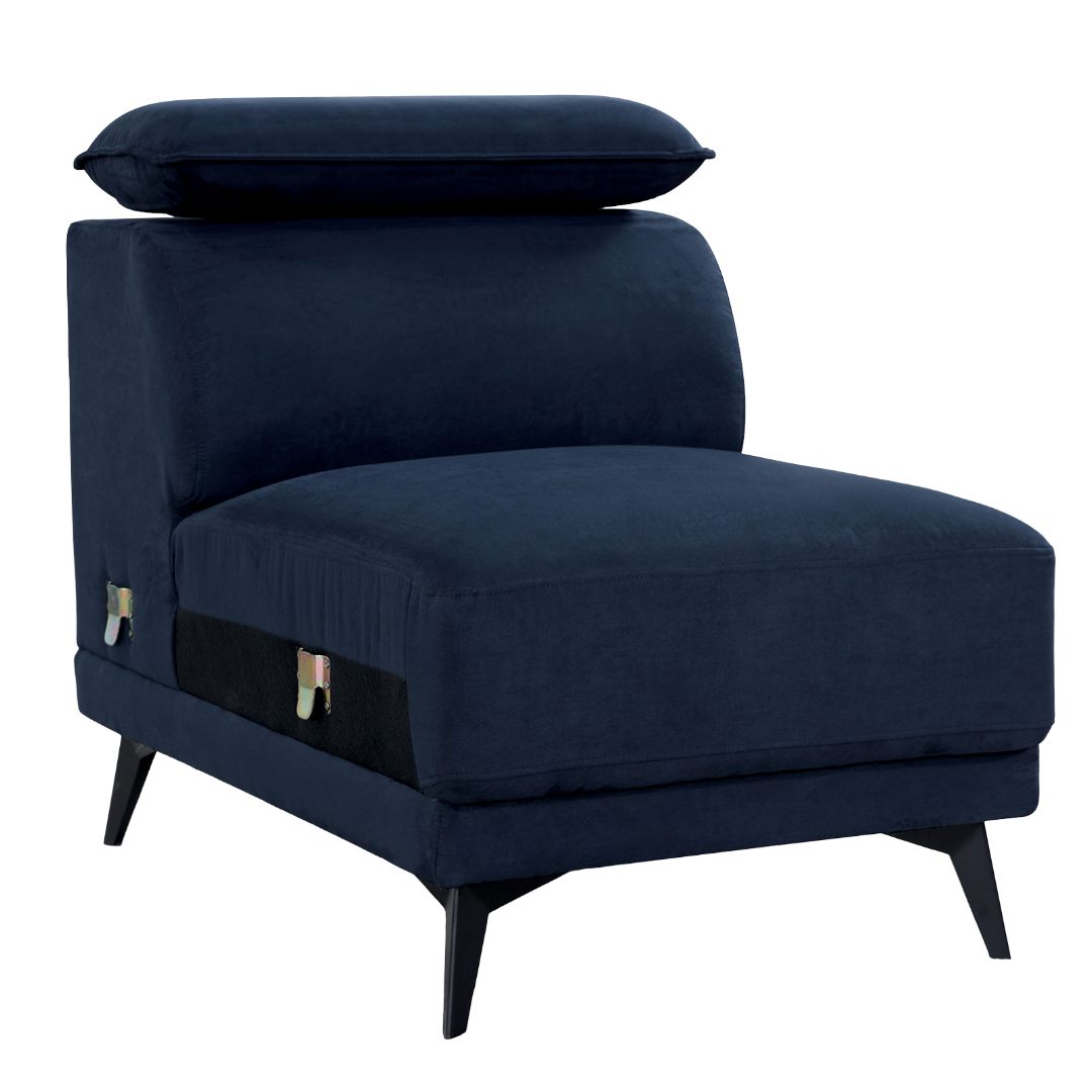 Sink into modern comfort with this compact armless chair — designed to blend contemporary style with supportive seating for everyday living. Upholstered in plush navy fabric and set on sleek steel legs, it pairs clean lines with adjustable features for personalized relaxation. Ideal for apartments, living rooms, or as part of a sectional grouping, the chair balances a tidy footprint with thoughtful comfort details.