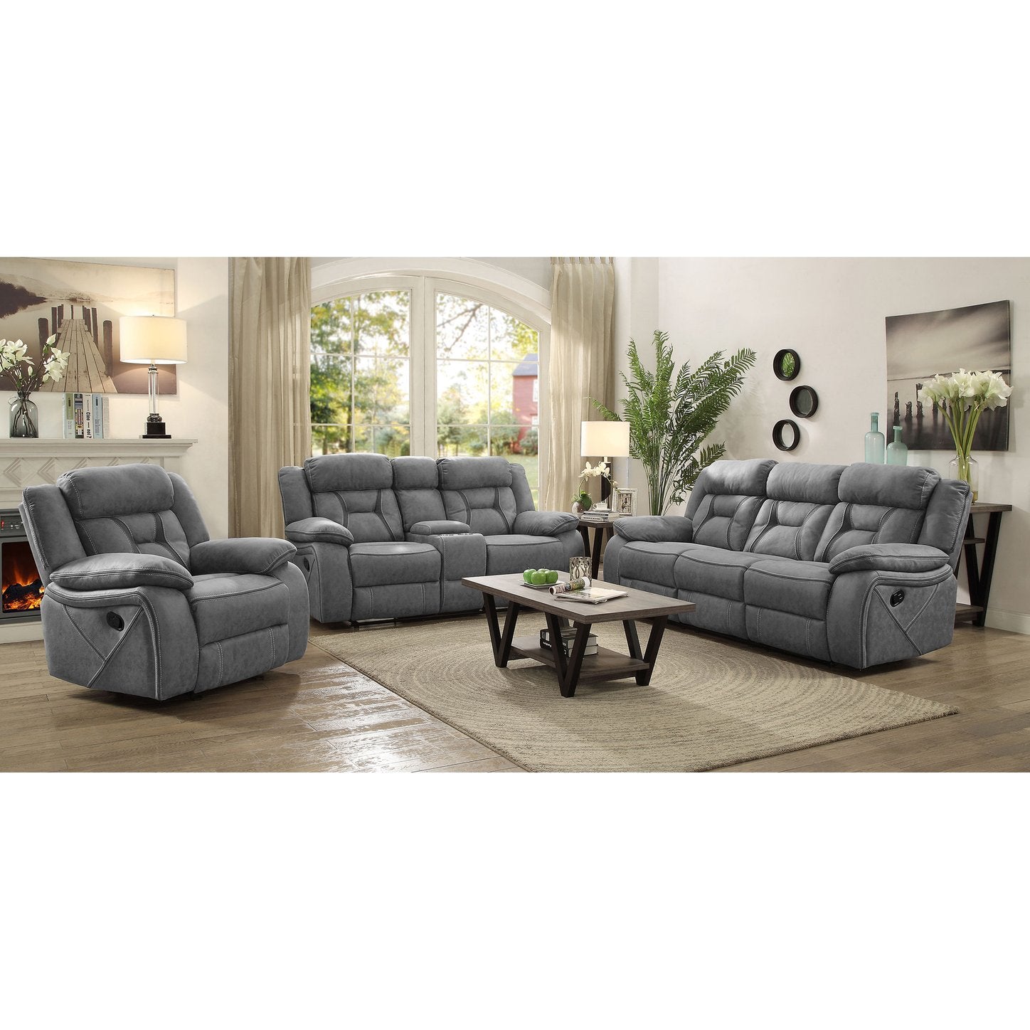 Sink into everyday comfort with the Endra Grey Upholstered Glider Recliner — a modern, versatile recliner designed to blend with contemporary and classic interiors while delivering smooth gliding motion and dependable support. Thoughtfully padded and upholstered in a neutral grey, this chair pairs durable construction with cozy features to create a relaxing focal point for your living room, nursery, or reading nook.