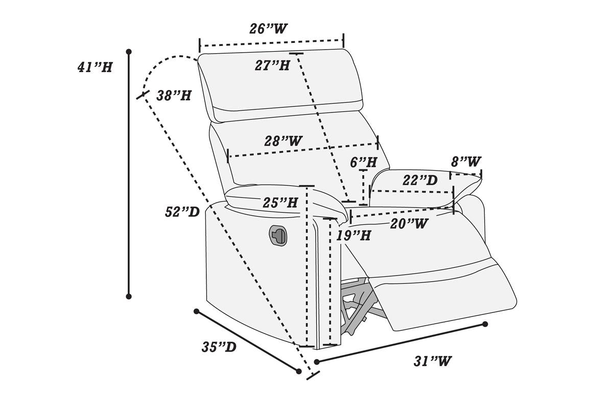 - Dimensions: Recliner Chair — 31"W x 35"L x 41"H (product lists additional measurements as 31 L x 31 W x 21 H; primary dimensions for the chair are 31"W x 35"L x 41"H)
