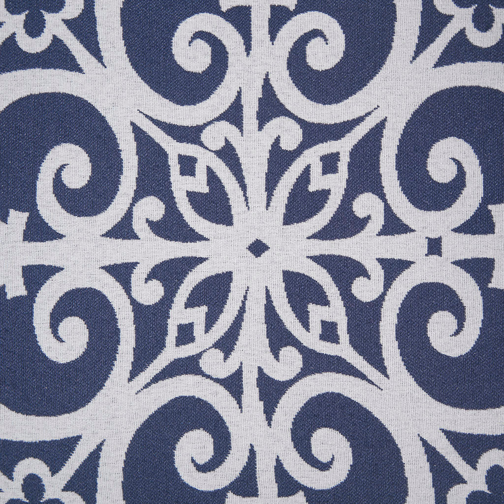 Elevate your living space with the Kirby Push Back Recliner — a chic, transitional piece that blends classic silhouette with modern comfort. Featuring a high camel back, rolled arms, and patterned navy upholstery with fretwork detailing, this recliner offers both style and support. Its solid wood legs with a dark finish provide sturdy, elegant support while the removable/reversible foam cushion and sinuous spring seat construction ensure lasting comfort. Easy to assemble with no tools required.