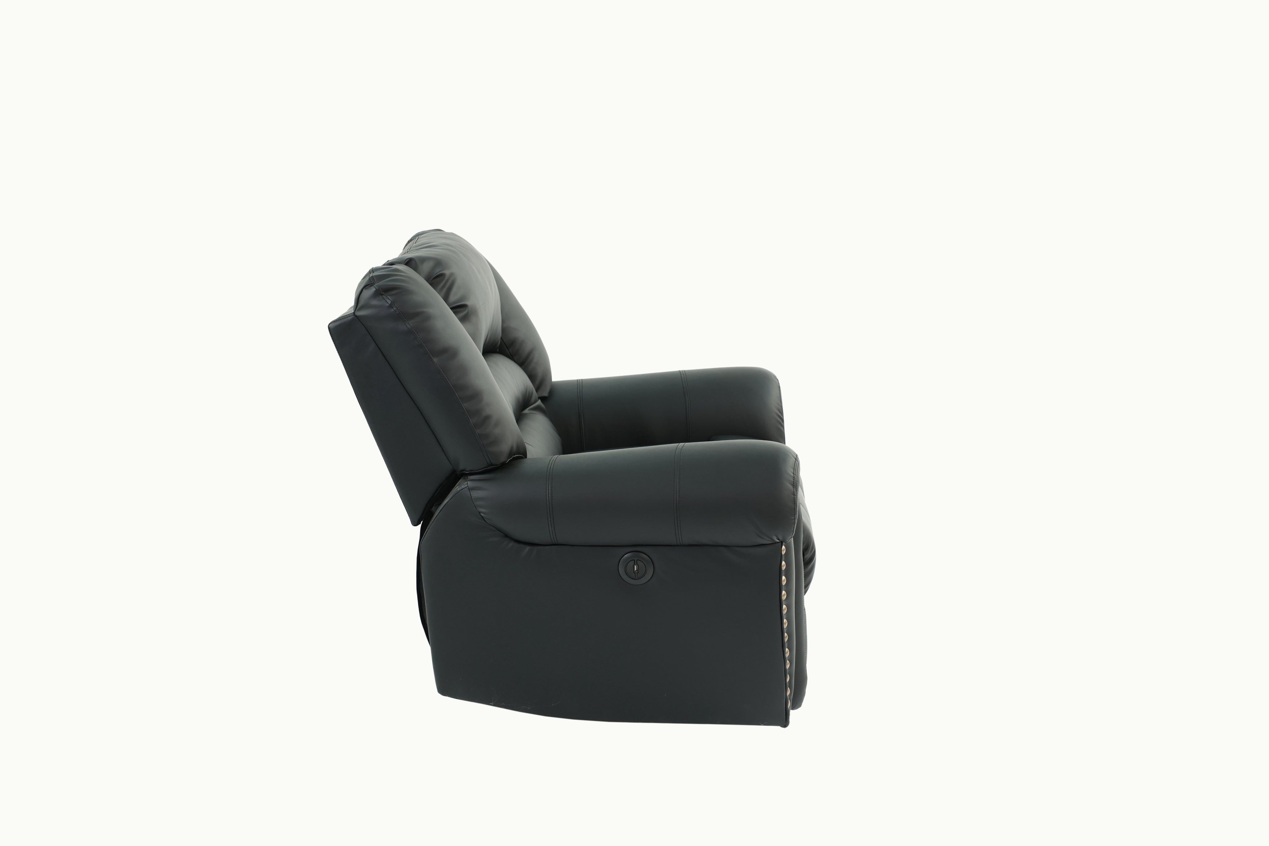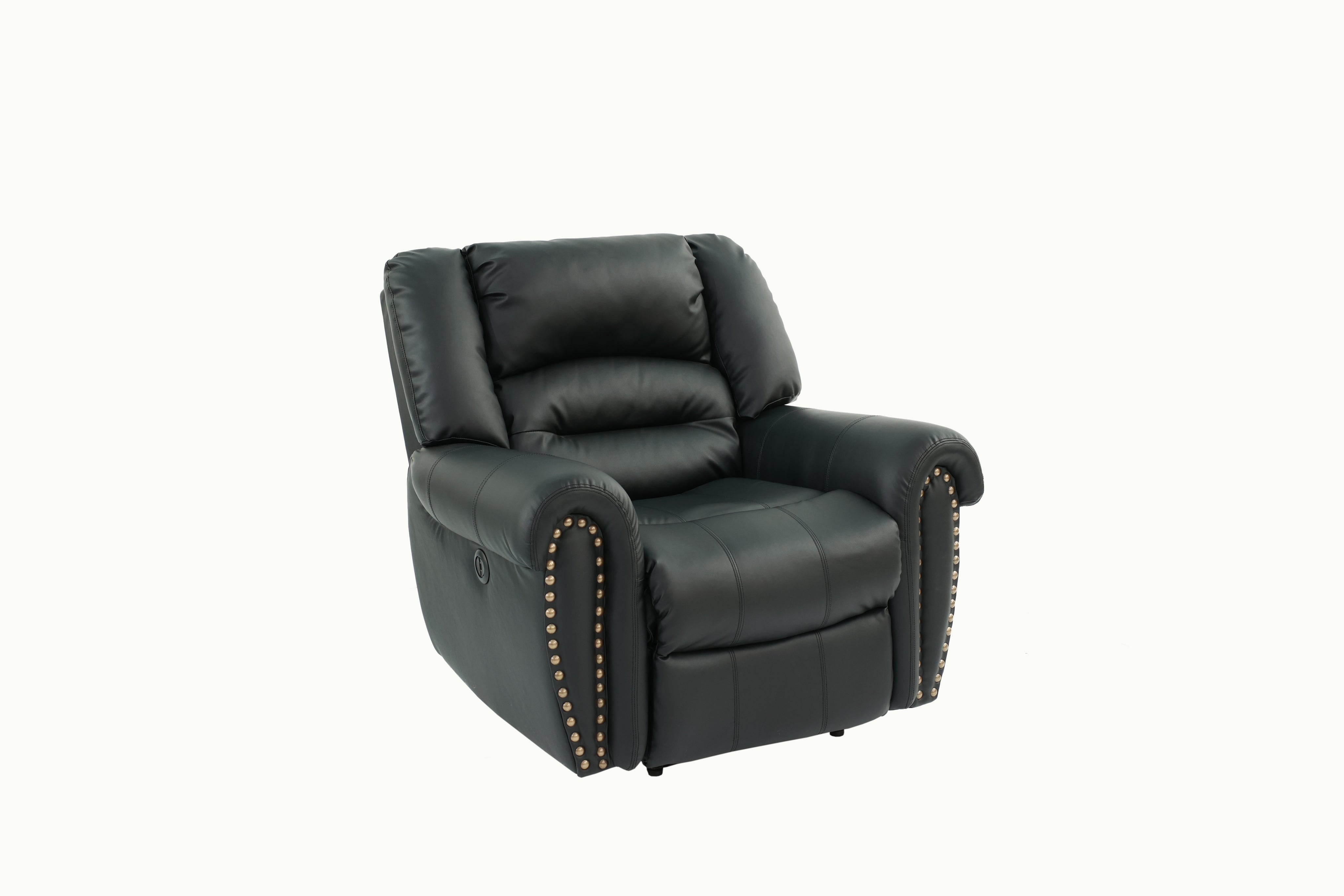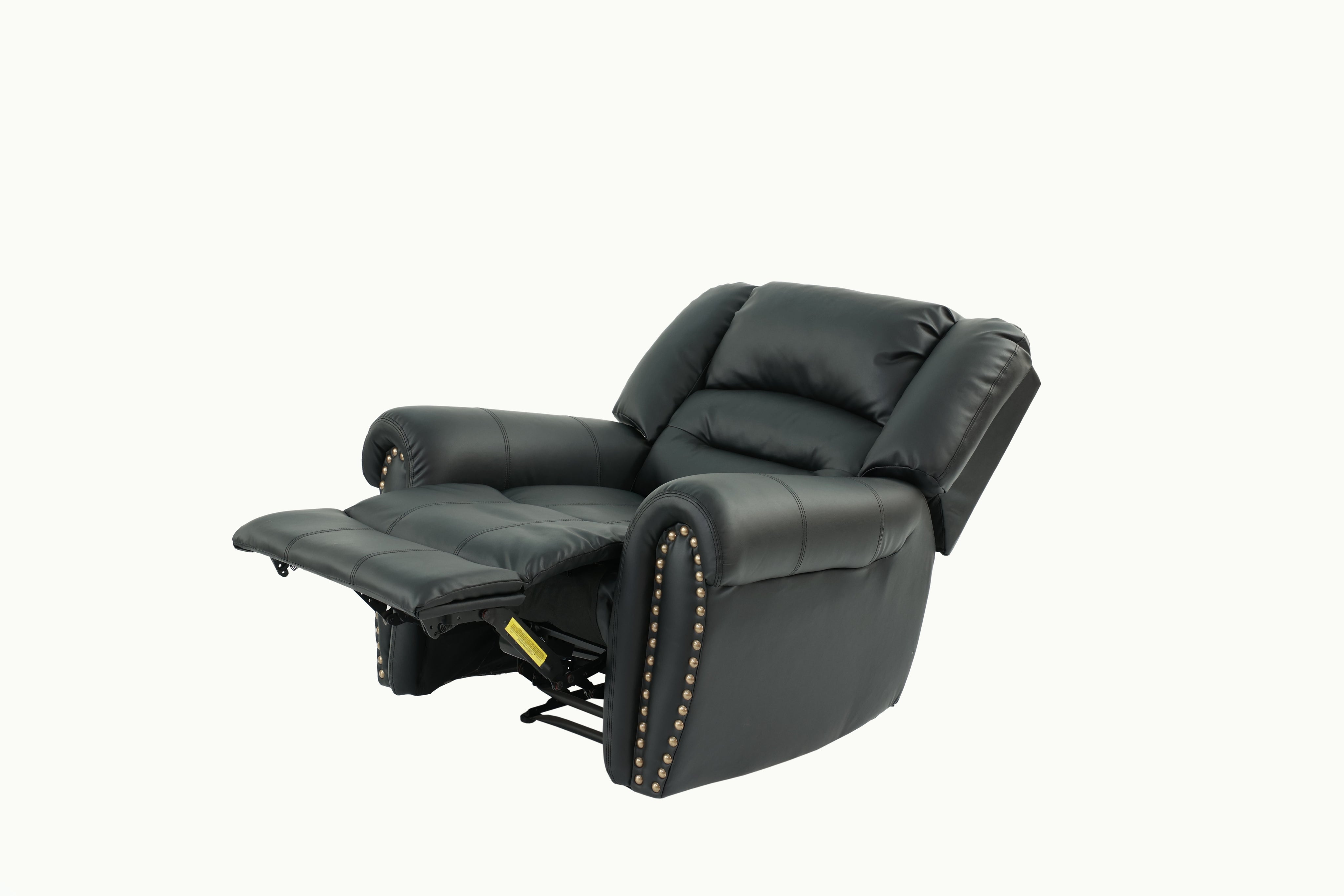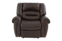 Sink into effortless comfort with this modern manual motion recliner — a sleek, single-seat glider crafted for everyday relaxation. Upholstered in durable bonded leather with elegant nailhead trim and a supportive three-tiered back, this reclining chair blends contemporary style with practical construction. Ideal for living rooms, media rooms, or cozy corners, it offers smooth manual reclining and a gliding motion for soothing movement without power cords or buttons.